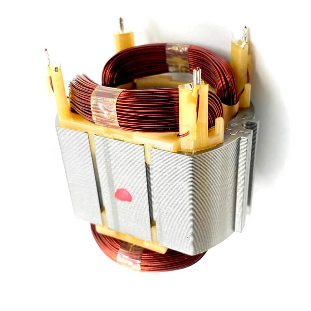 Estator também conhecido como bobina de campo, usado em conjunto com induzido e escovas de carvão.