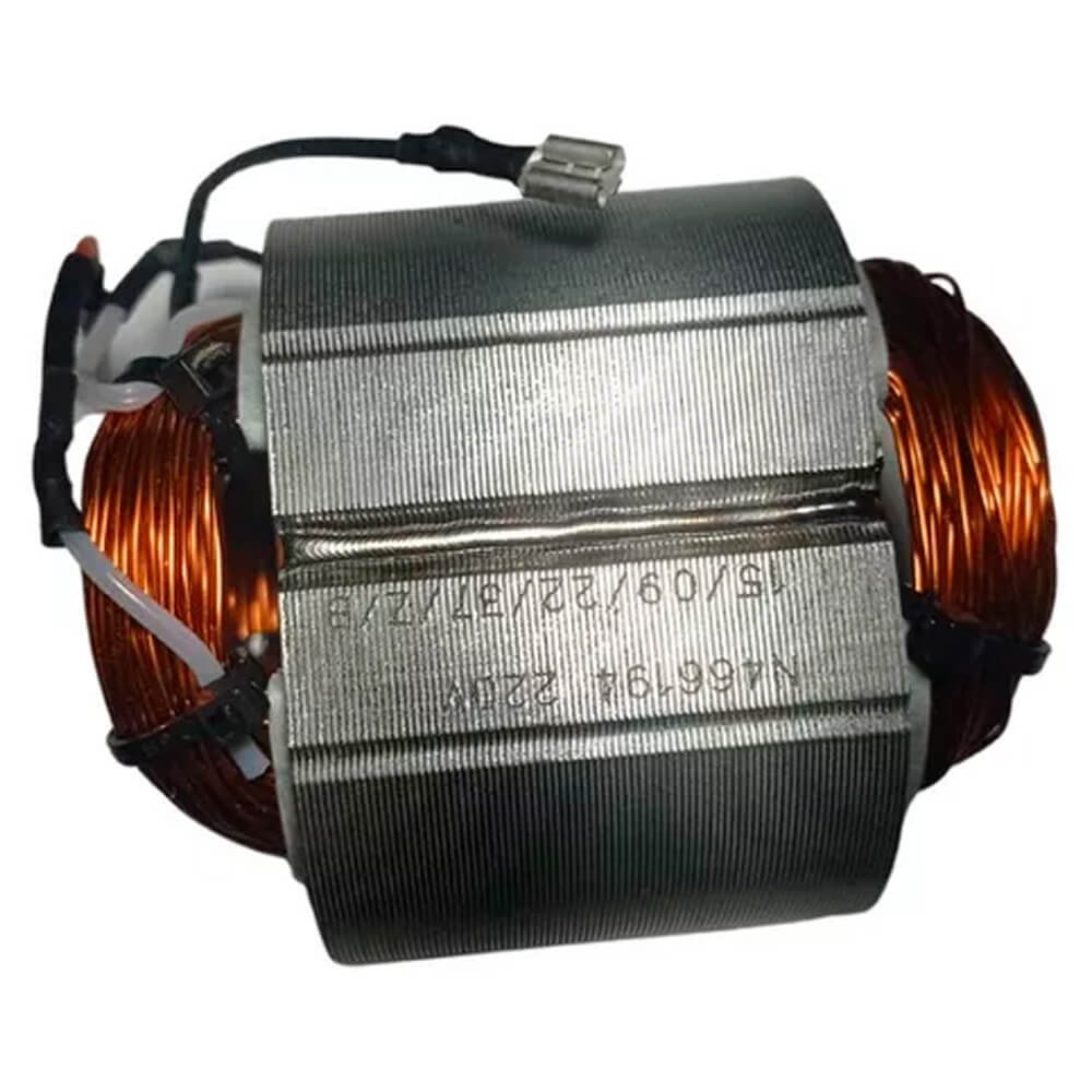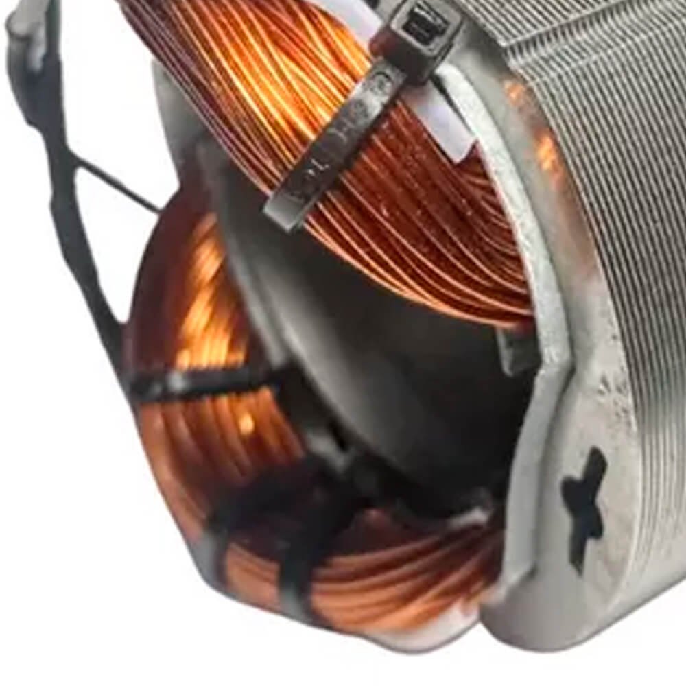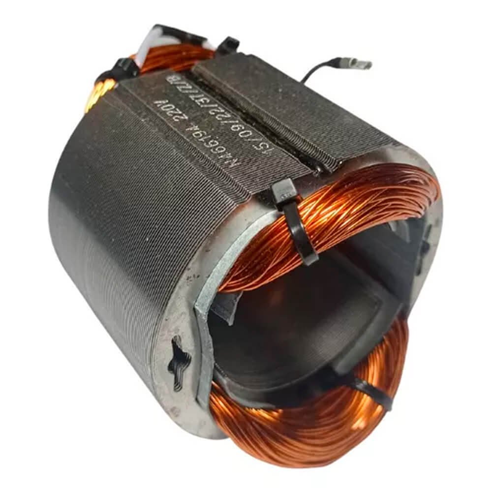 Estator também conhecido como bobina de campo, usado em conjunto com induzido e escovas de carvão.