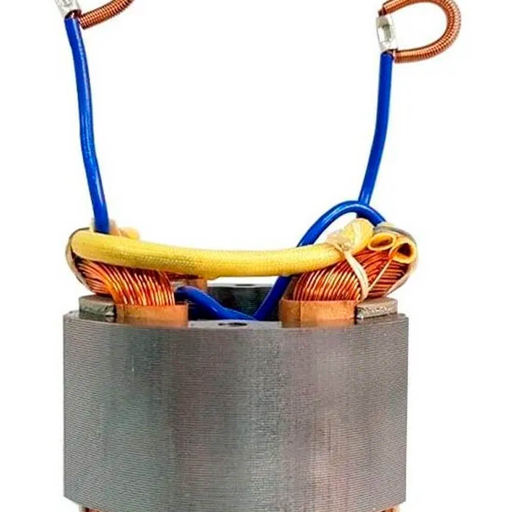 Estator também conhecido como bobina de campo, usado em conjunto com induzido e escovas de carvão.