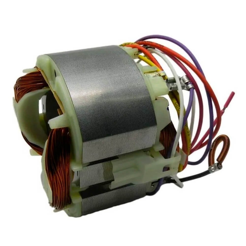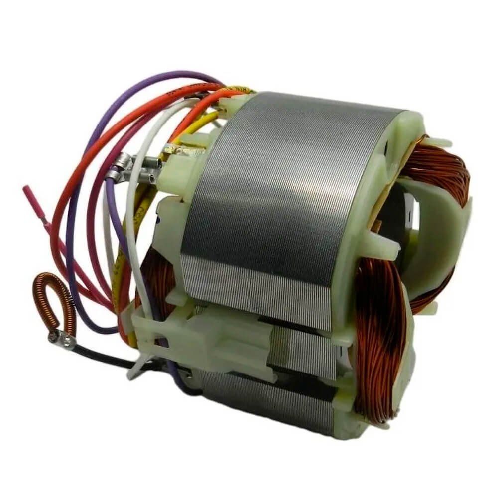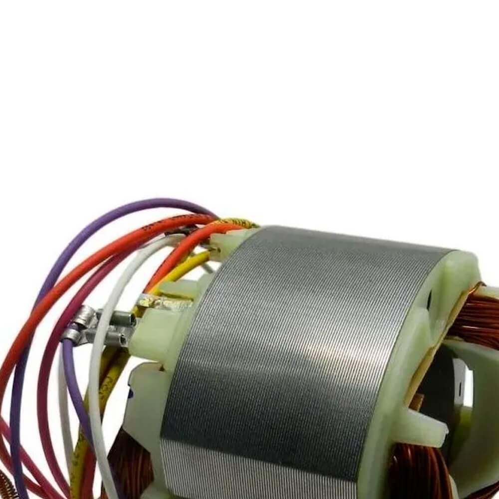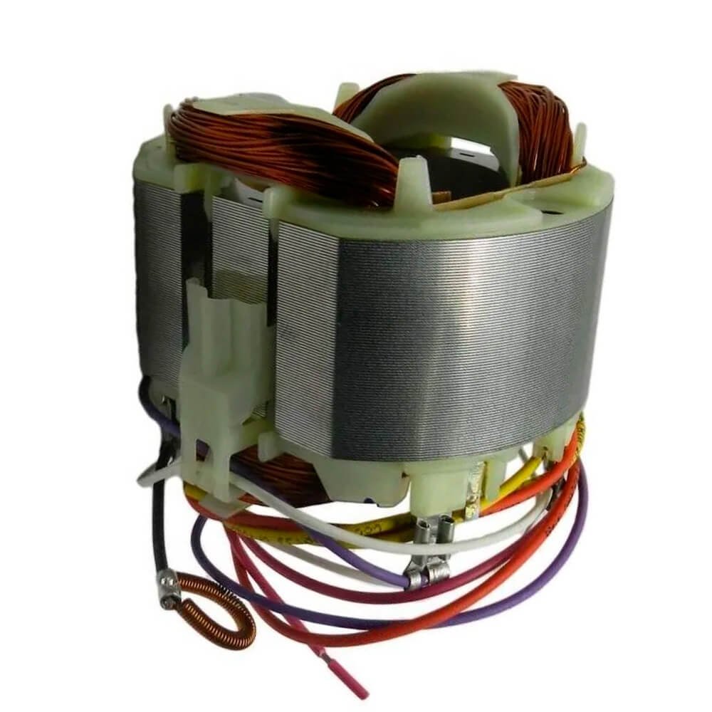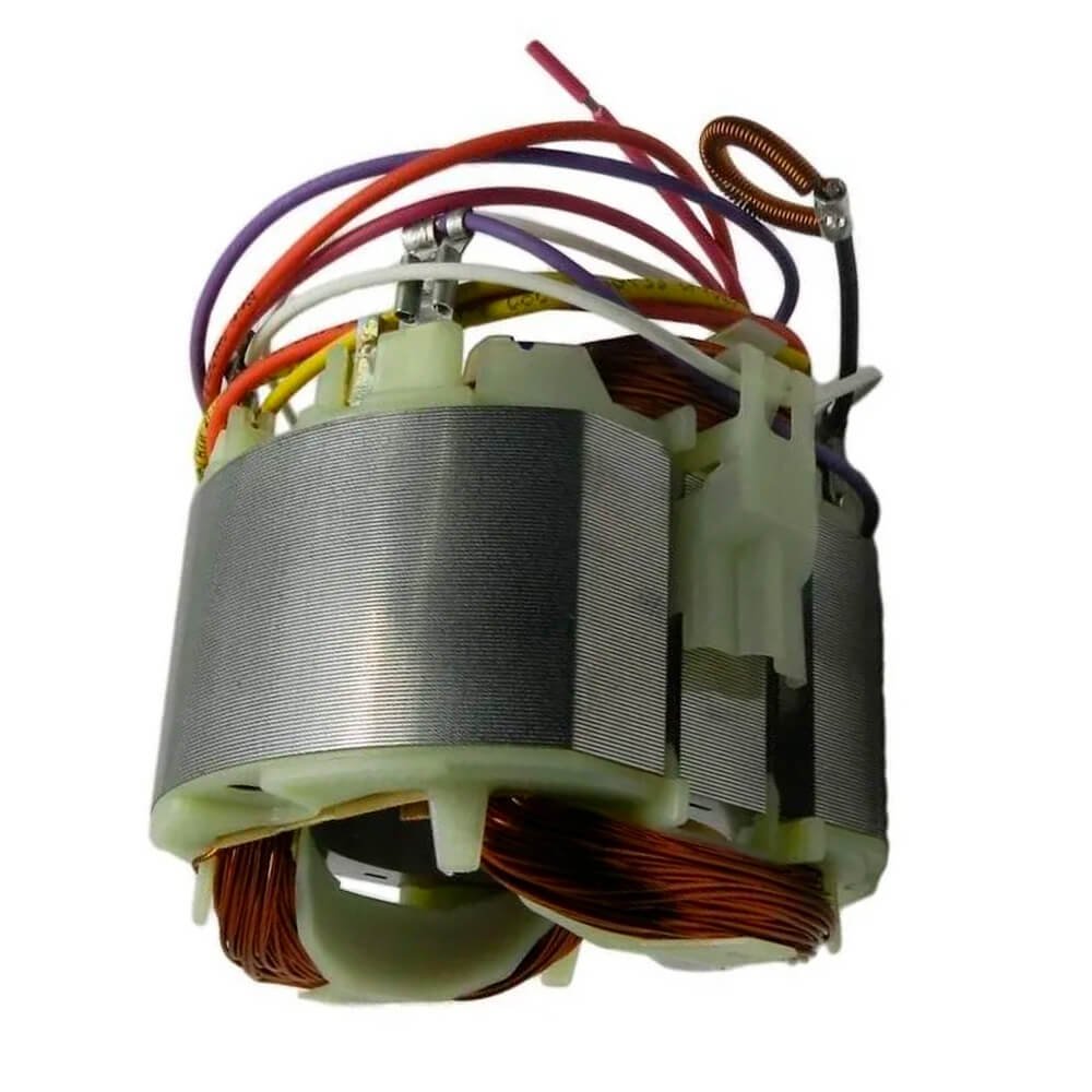 Estator também conhecido como bobina de campo, usado em conjunto com induzido e escovas de carvão.