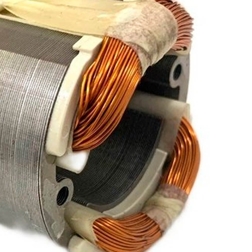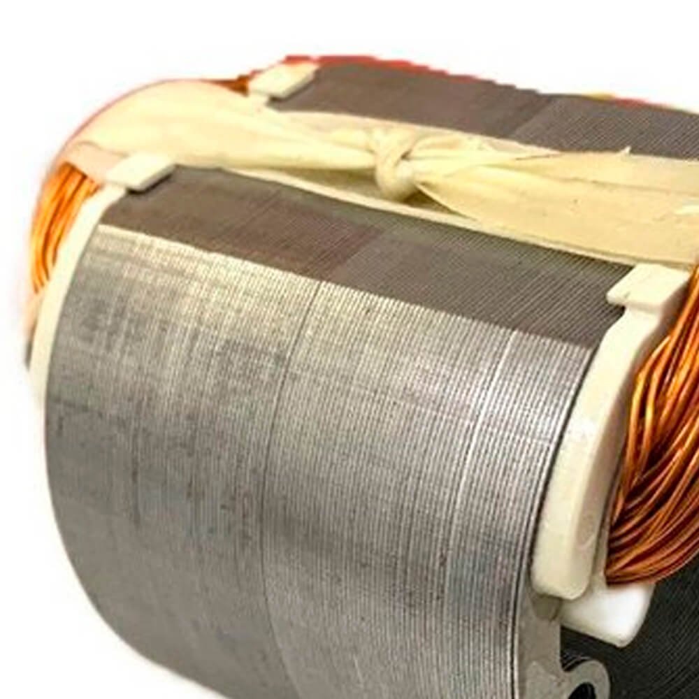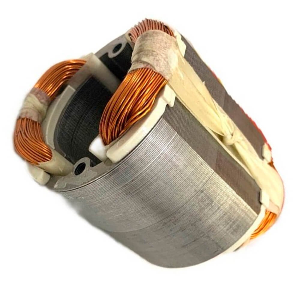 Estator também conhecido como bobina de campo, usado em conjunto com induzido e escovas de carvão.