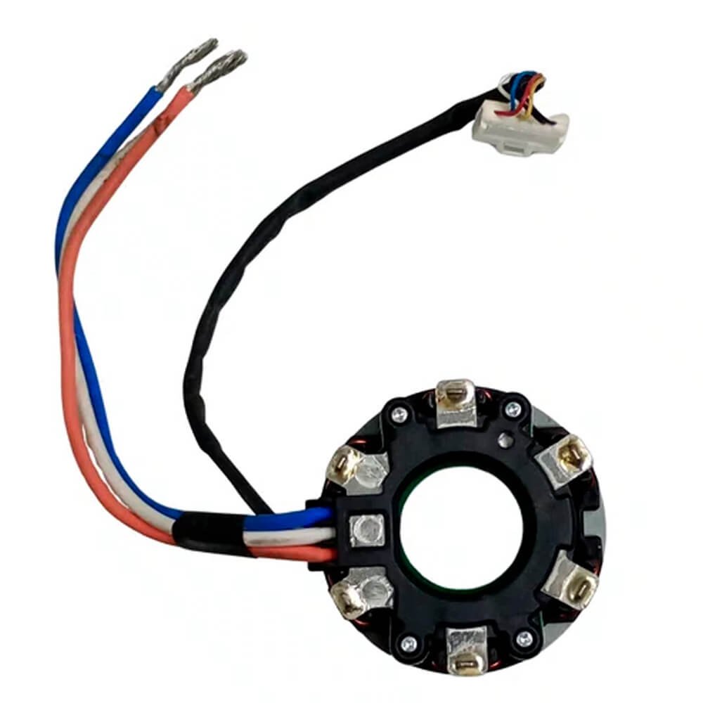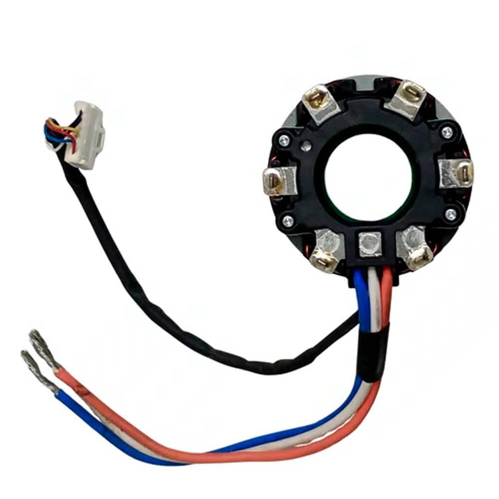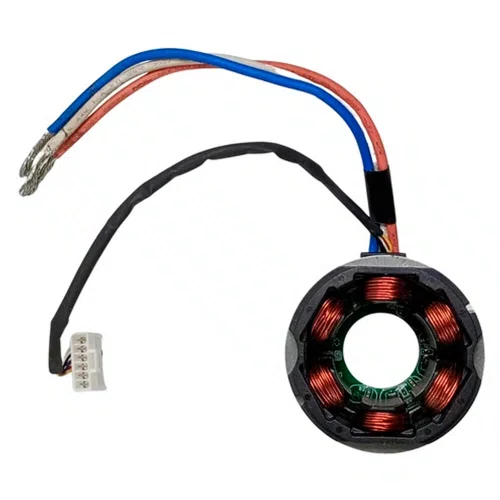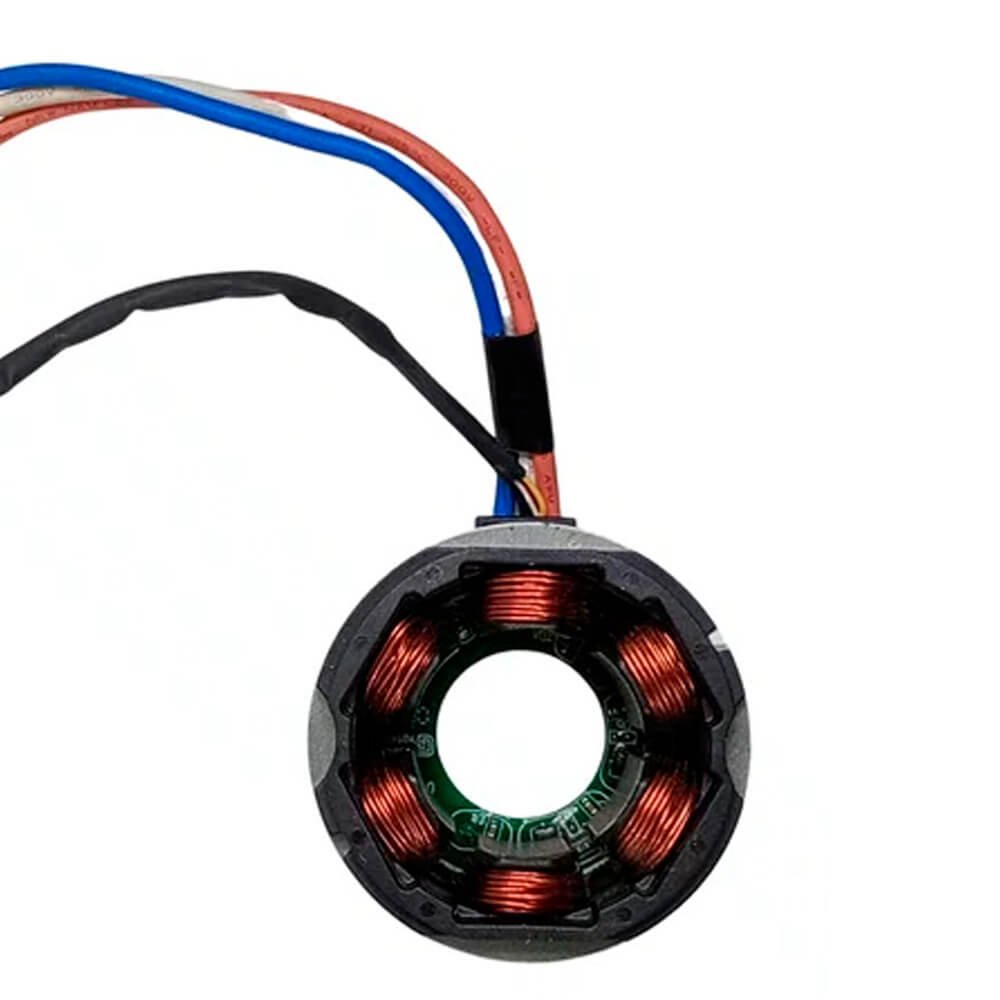Estator também conhecido como bobina de campo, usado em conjunto com induzido e escovas de carvão.