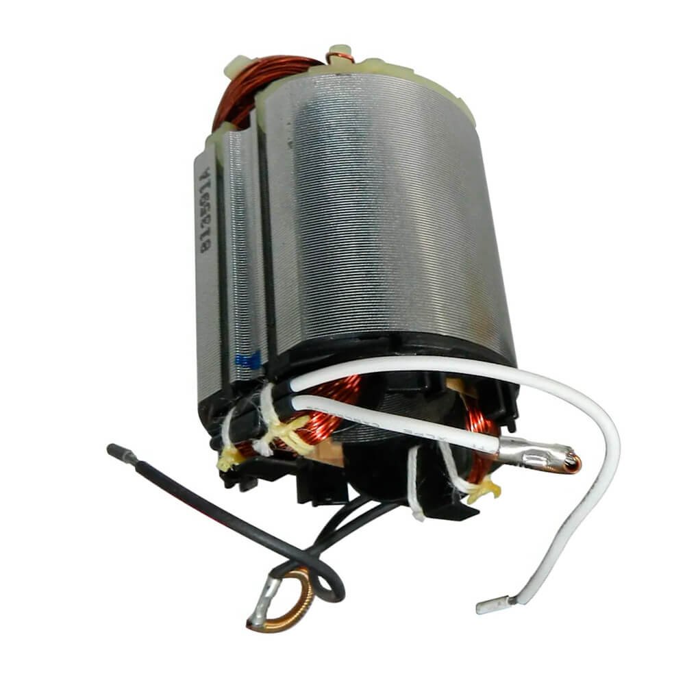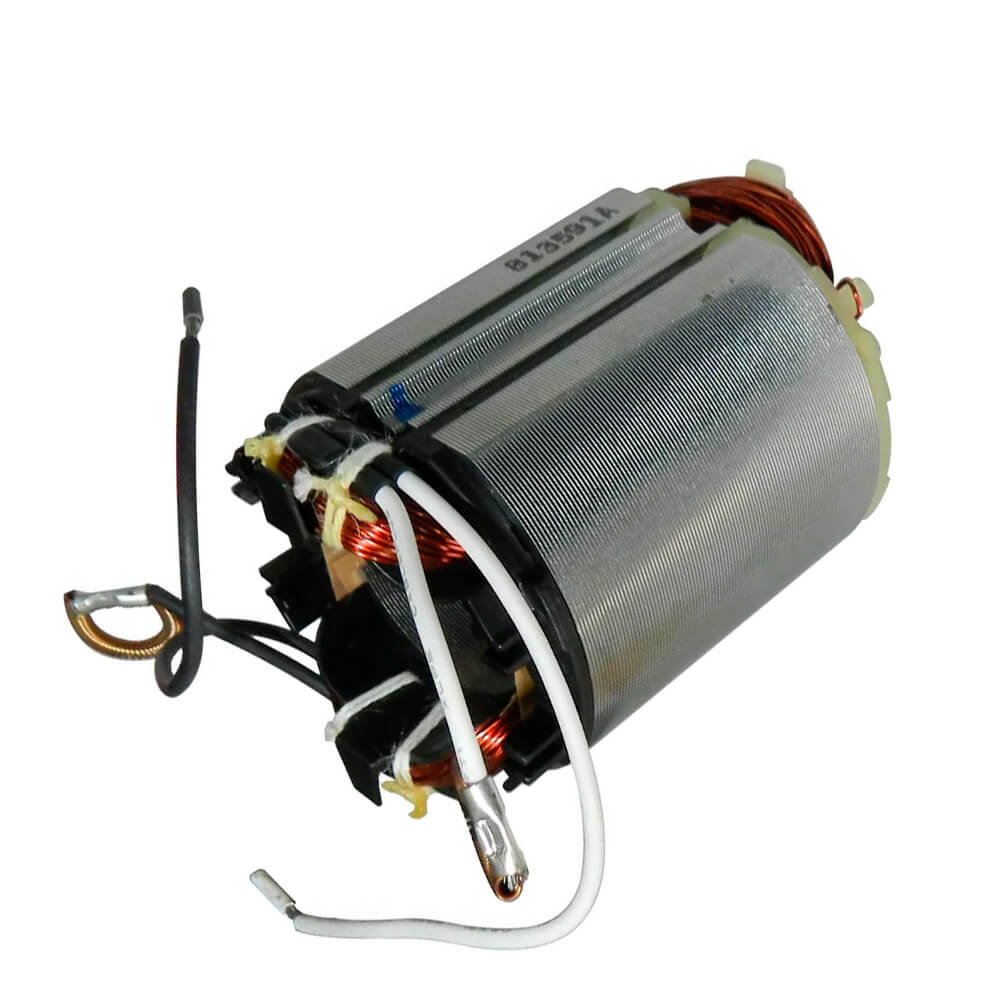 Estator também conhecido como bobina de campo, usado em conjunto com induzido e escovas de carvão.