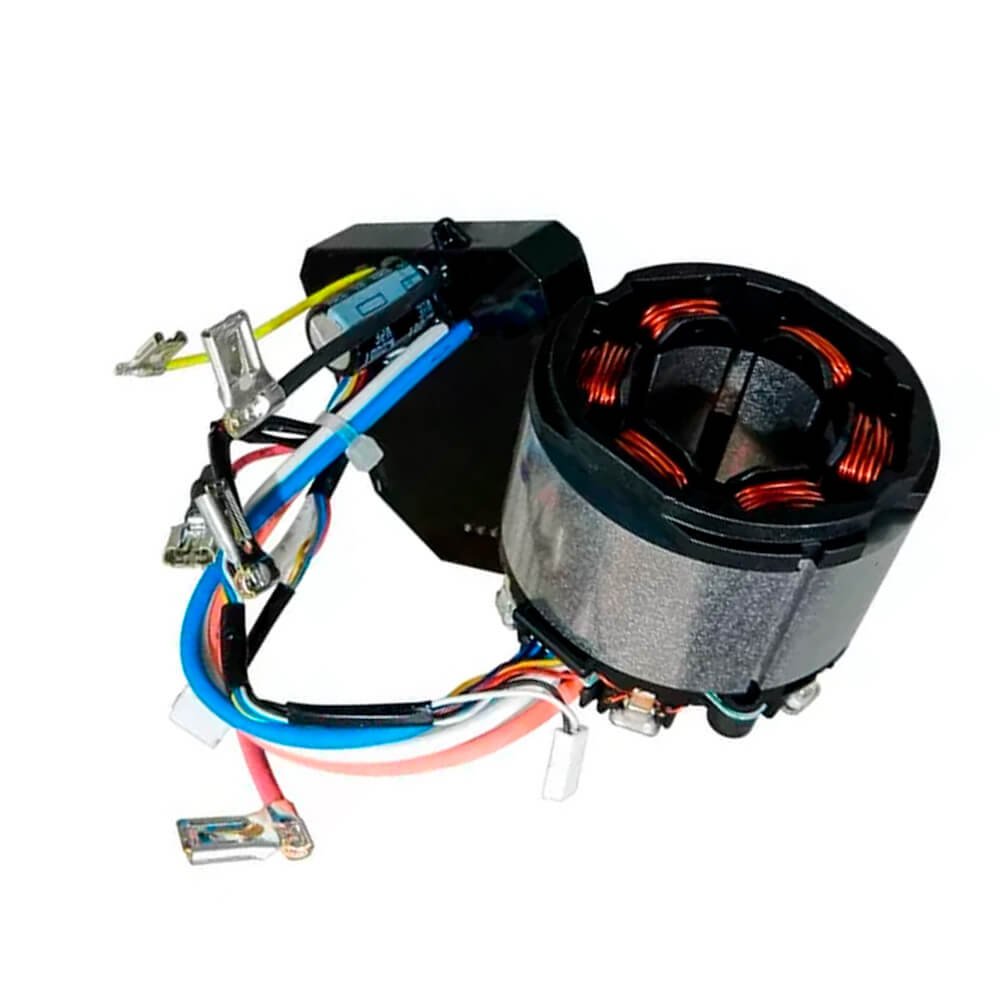 Estator também conhecido como bobina de campo, usado em conjunto com induzido e escovas de carvão.