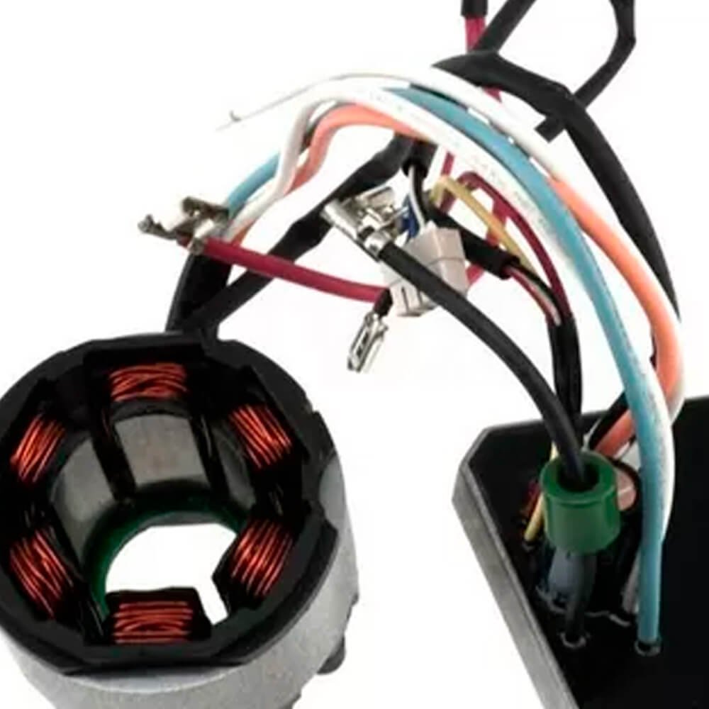 Estator também conhecido como bobina de campo, usado em conjunto com induzido e escovas de carvão.
