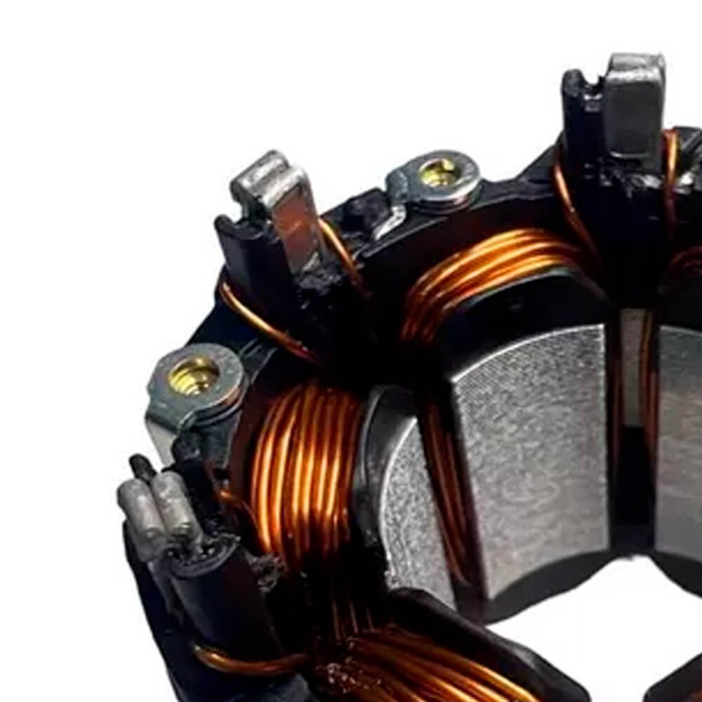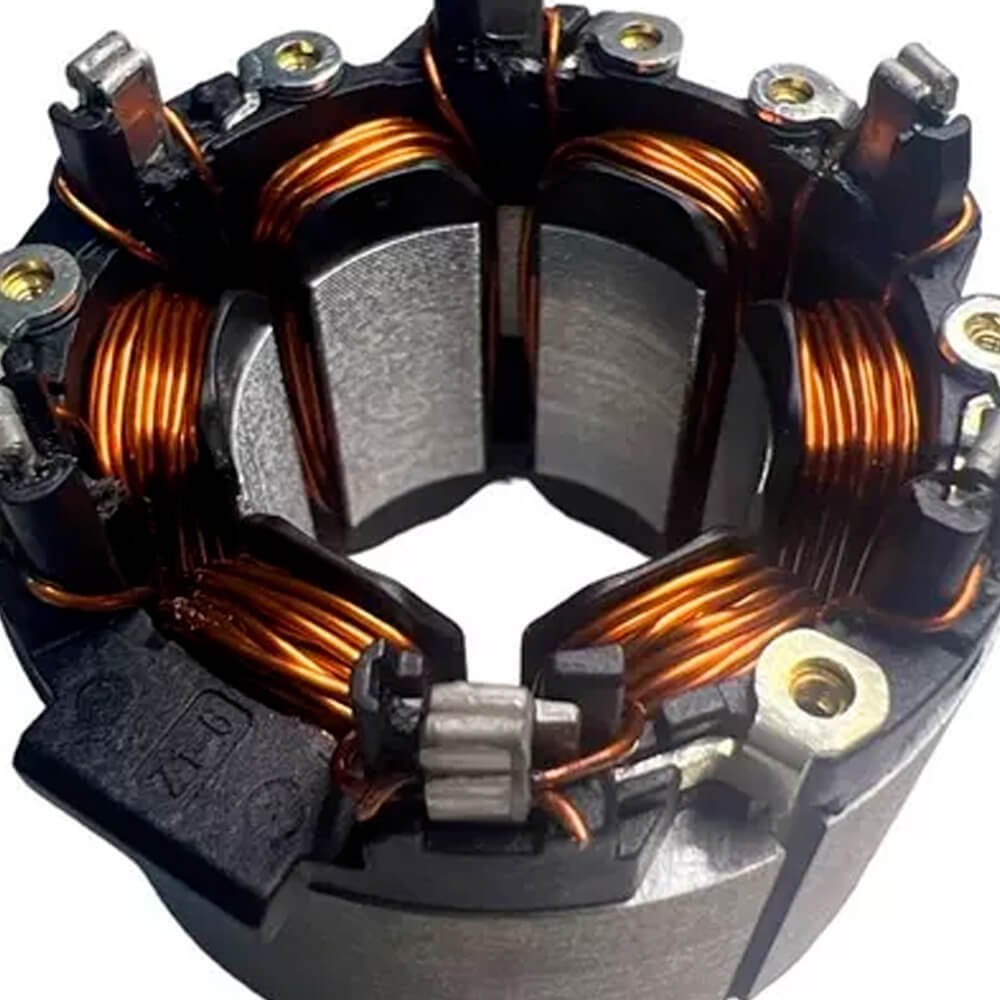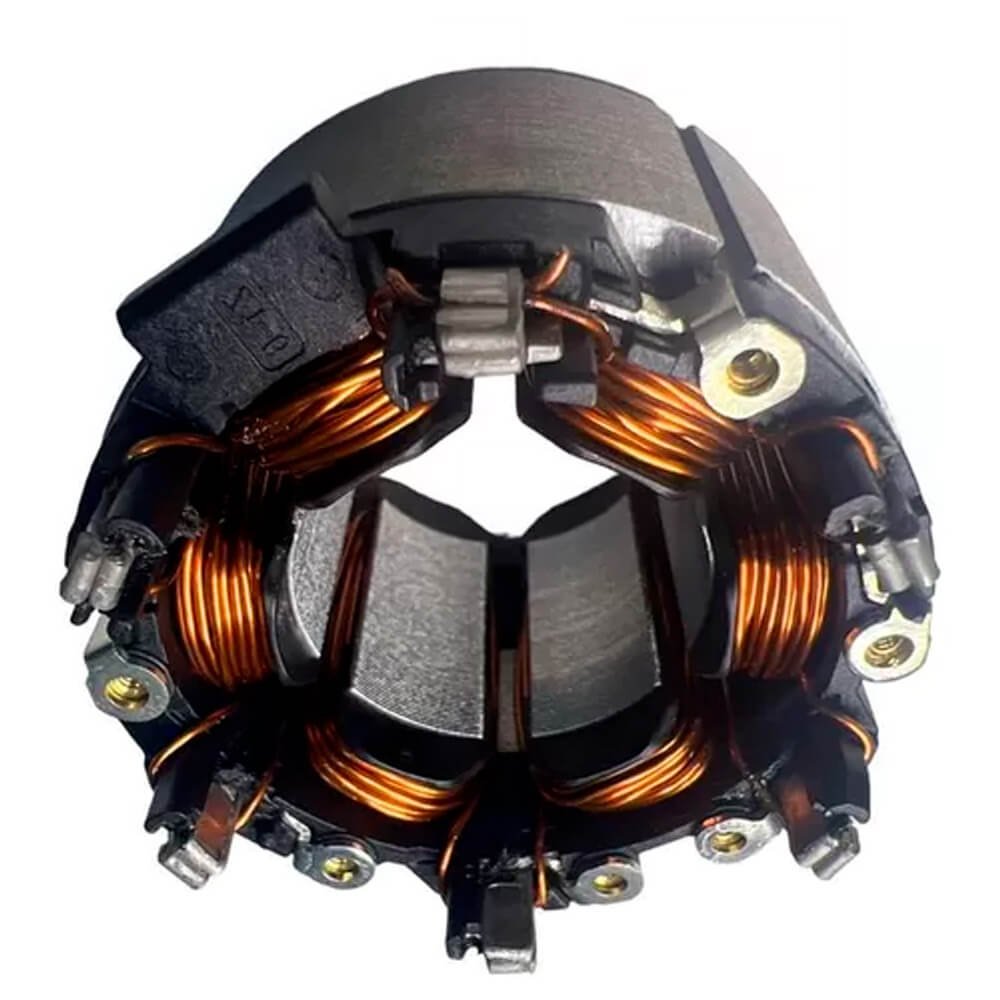 Estator também conhecido como bobina de campo, usado em conjunto com induzido e escovas de carvão.