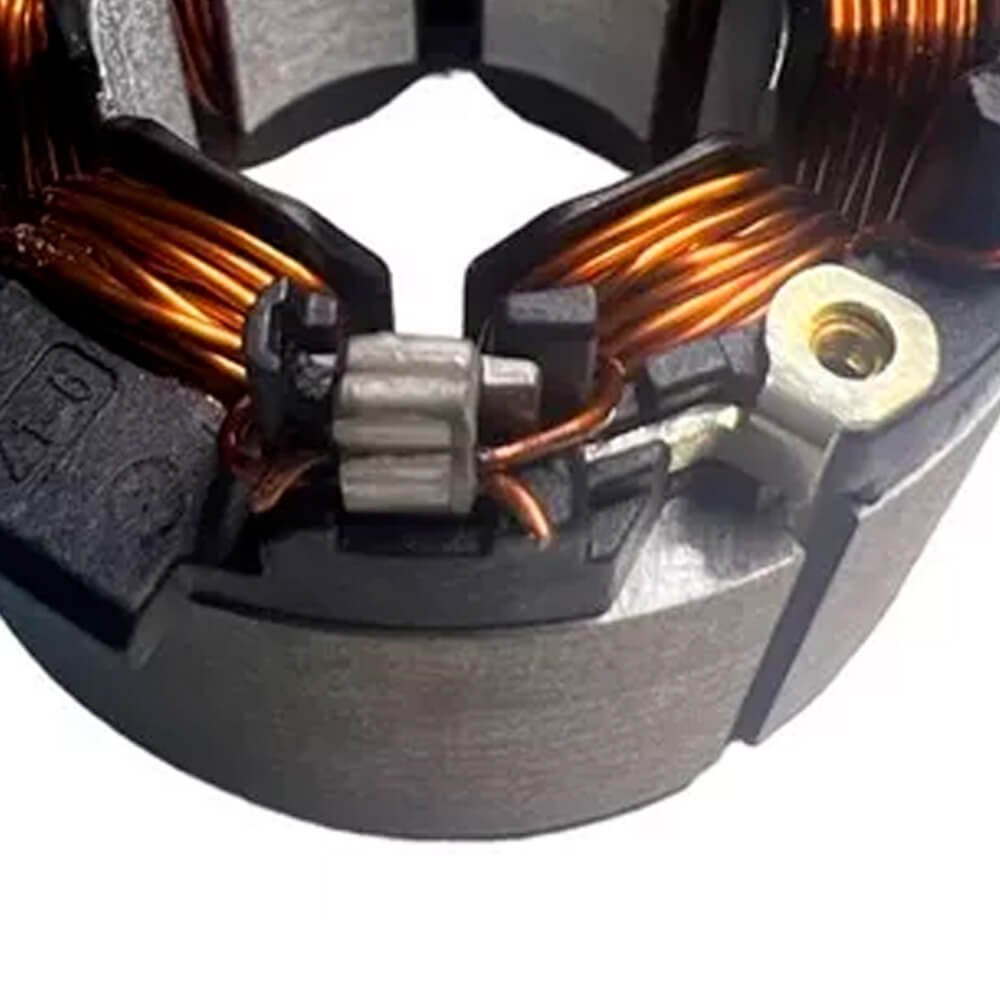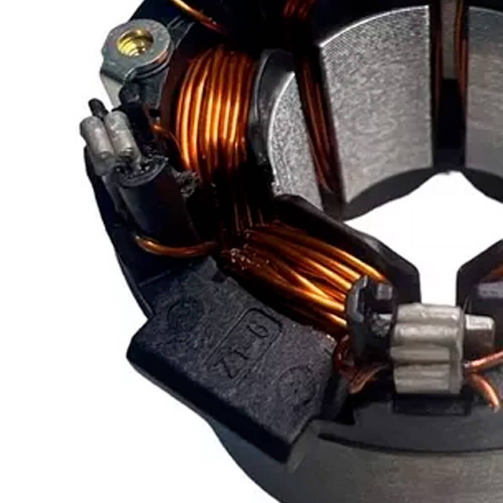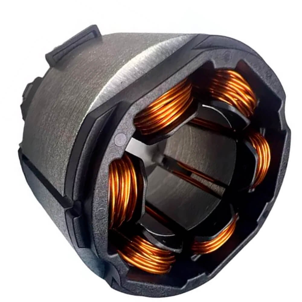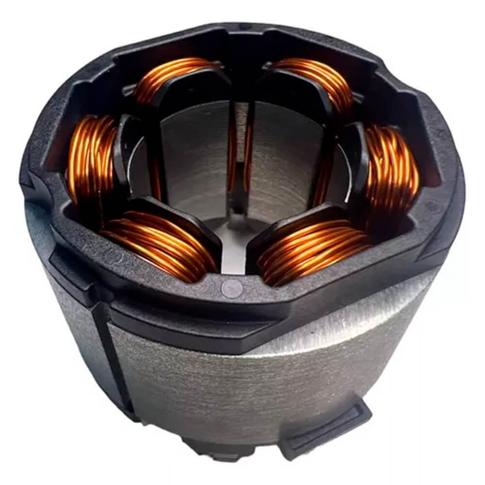 Estator também conhecido como bobina de campo, usado em conjunto com induzido e escovas de carvão.