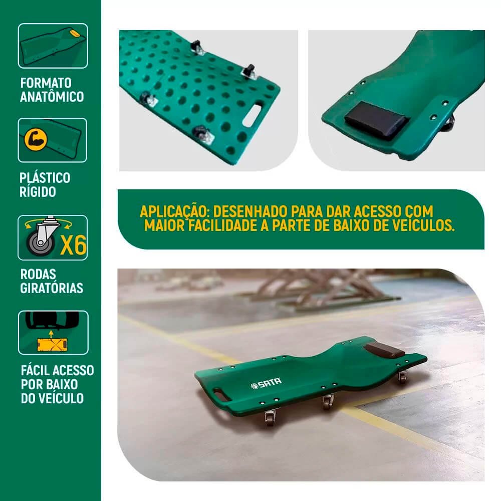 A esteira mecânica SATA é ideal para profissionais e oficinas mecânicas que valorizam conforto, praticidade e ergonomia em seu trabalho diário. O formato anatômico e o encosto de cabeça acolchoado garantem maior conforto durante o uso.