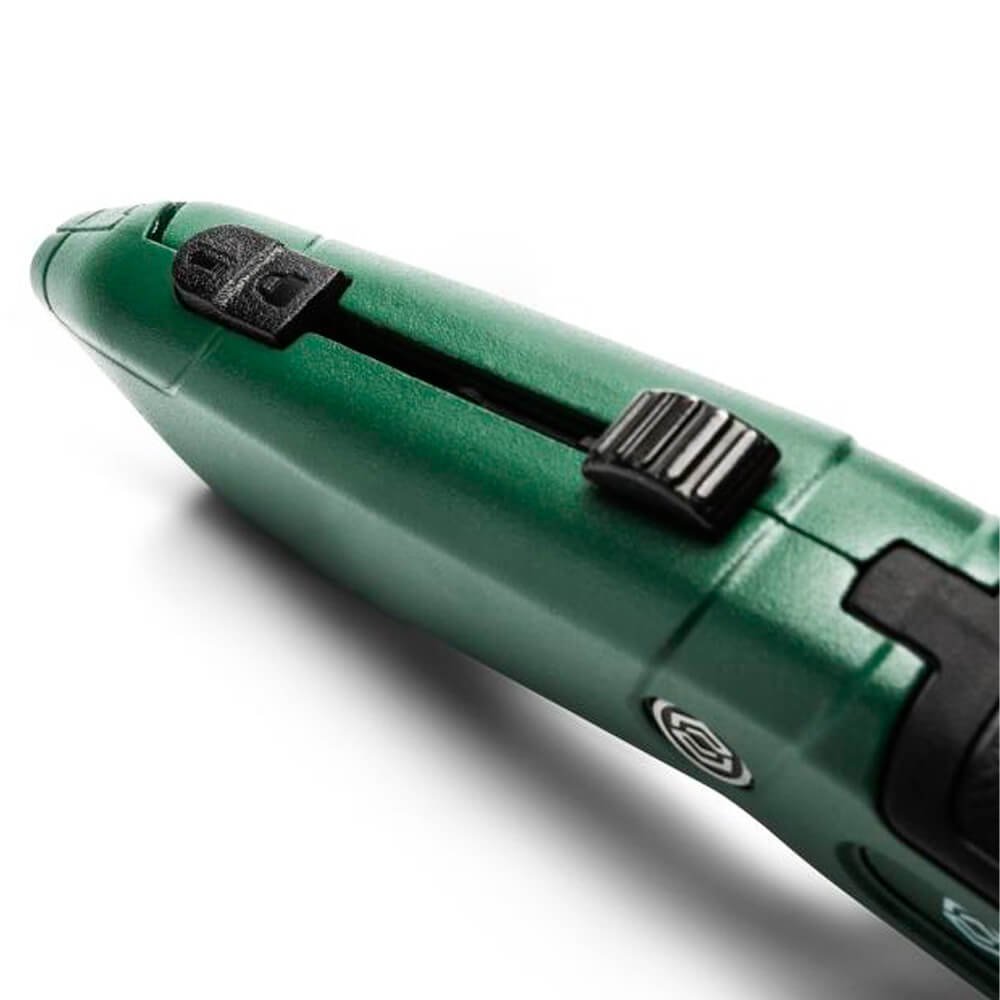 Estilete de Segurança Auto-Retrátil Reforçado Trapezoidal – ST93624G é indispensável para profissionais que precisam de cortes precisos em indústrias, almoxarifados, carpintaria e elétrica no geral. Dupla segurança garantida, devido ao mecanismo de retração imediata e automática da lâmina ao soltar o botão superior ou ao final do corte. Design projetado para obter o melhor ângulo de corte e maior agarre, atendendo tanto a destros quanto canhotos. Construído com um corpo de metal robusto este estilete oferece durabilidade e resistência superior. Sua lâmina trapezoidal, fabricada em SK5 garante alta precisão, resistência e durabilidade excepcionais, além de acompanhar 2 lâminas de reposição inclusas, armazenando no estojo até 5 lâminas extras, otimizando o uso e facilitando a troca.
