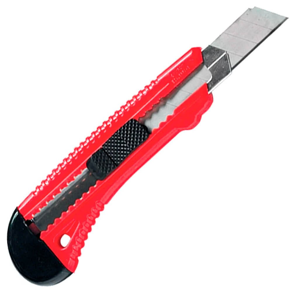 Estilete profissional é indicado para cortes em papel, borracha, cordas e plásticos. Conta com botão para travamento da lâmina mantendo-a retraída quando não está em uso, oferecendo maior segurança para o usuário. Possui lâmina de 18mm em material resistente e corpo metálico. Ideal para fazer cortes com precisão em superfícies como papel, plásticos, cordas e outros mais.