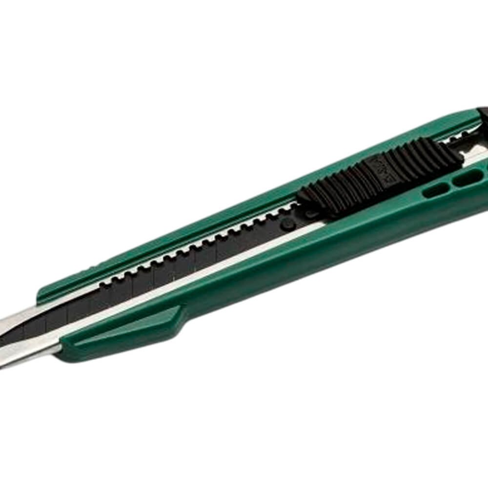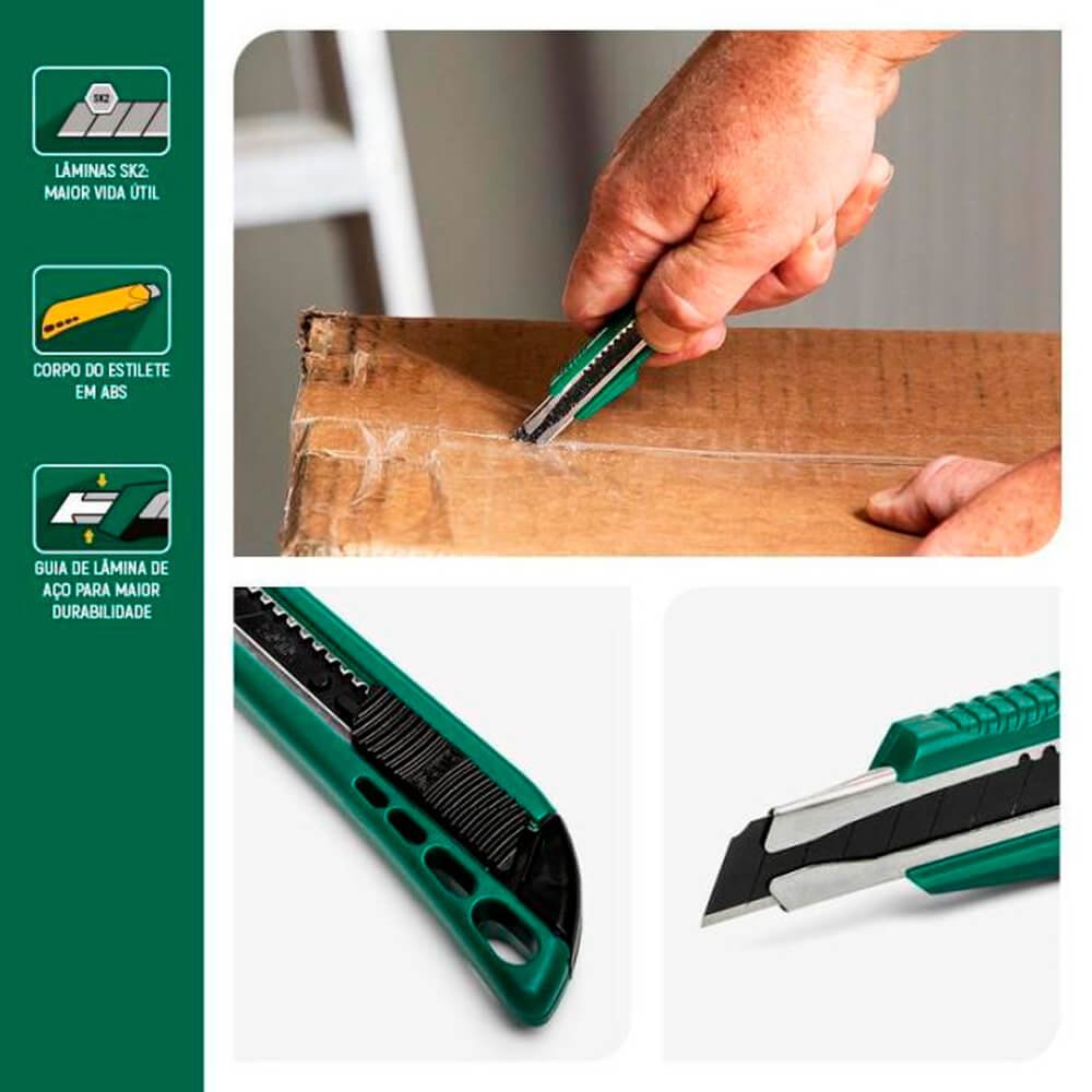 O Estilete Retrátil de 9mm SATA - ST93426SC oferece máxima praticidade e segurança devido à sua lâmina com 13 segmentos que com um simples gesto, é possível quebrar um segmento e ter uma lâmina nova e afiada, garantindo uma eficiência contínua, além de evitar acidentes causados por lâminas cegas, sendo indispensável para profissionais que lidam com cortes precisos em pisos vinílicos, papéis de parede, drywall e carpintaria em geral.