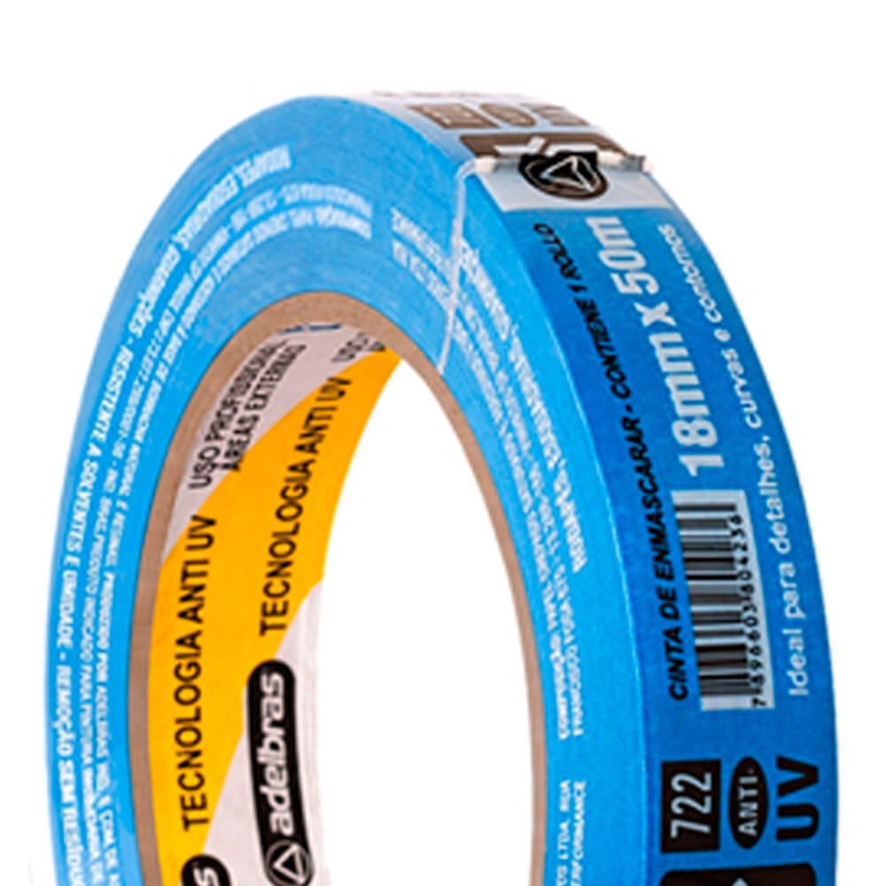 Fita Crepe 722 18mm x 50m Azul (Anti UV-IMOB) - Adelbras