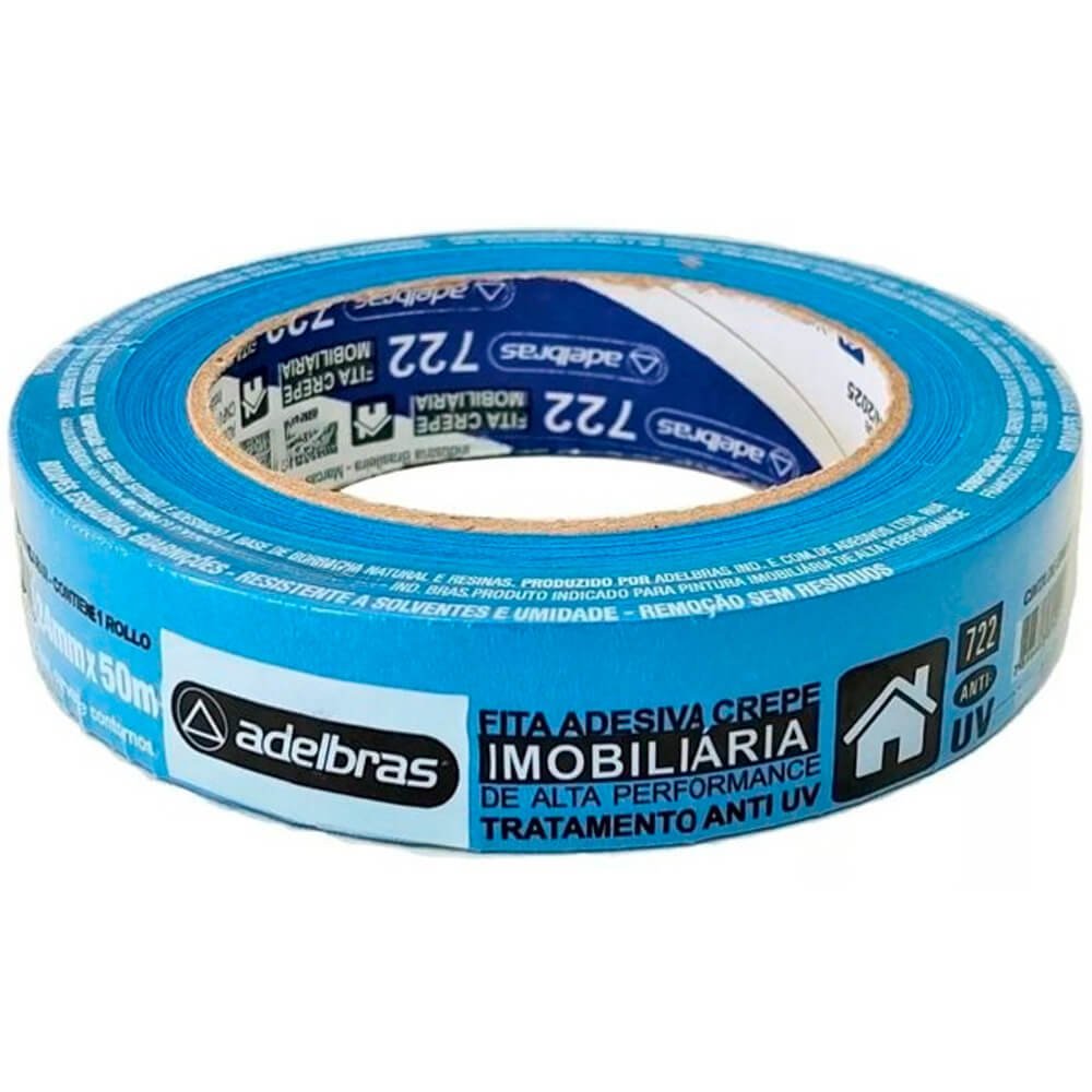 Fita Crepe 722 24mm x 50m Azul (Anti UV-IMOB) - Adelbras