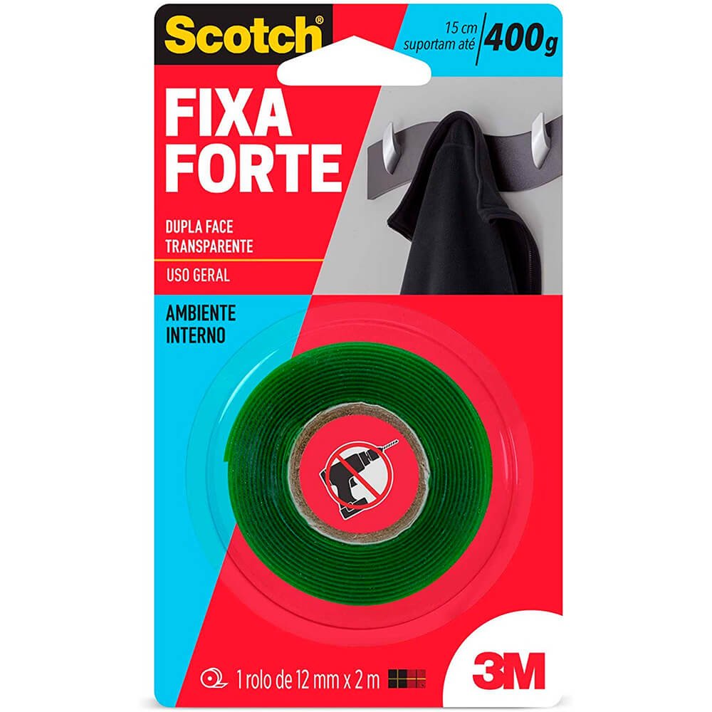 A Fita Dupla Face 3M Scotch® Fixa Forte Transparente é a solução mais prática para fixar quadros, espelhos e peças de decoração. Por ser transparente, é ideal para fixar objetos em superfícies que exibam a fita aplicada, como vidro e acrílico. Sua aplicação é fácil, evitando furos e sujeira.