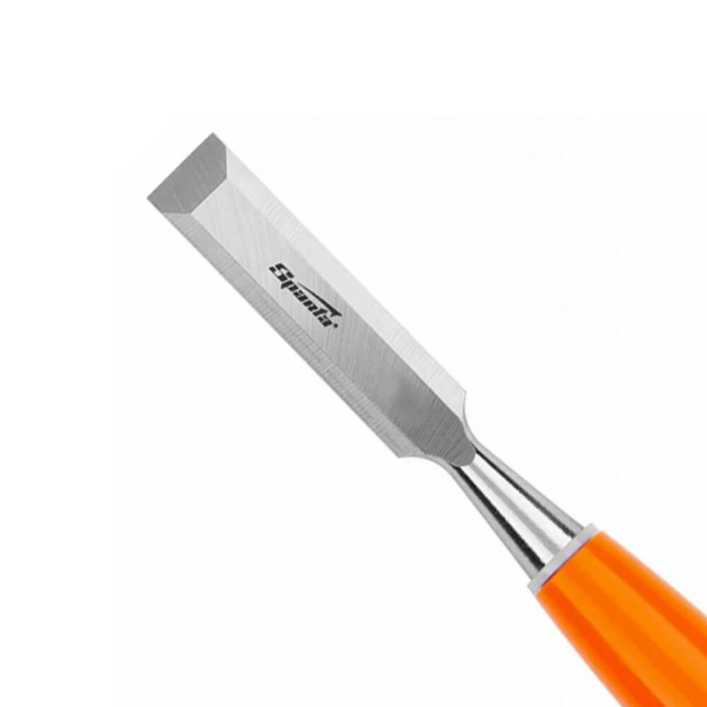 O formão é usado para fazer para cortes precisos, corrigir orifícios e fazer entalhas na madeira. O cabo é feito de plástico resistente a golpes e o corpo é feito de aço carbono temperado. Ângulo especial de afiação.