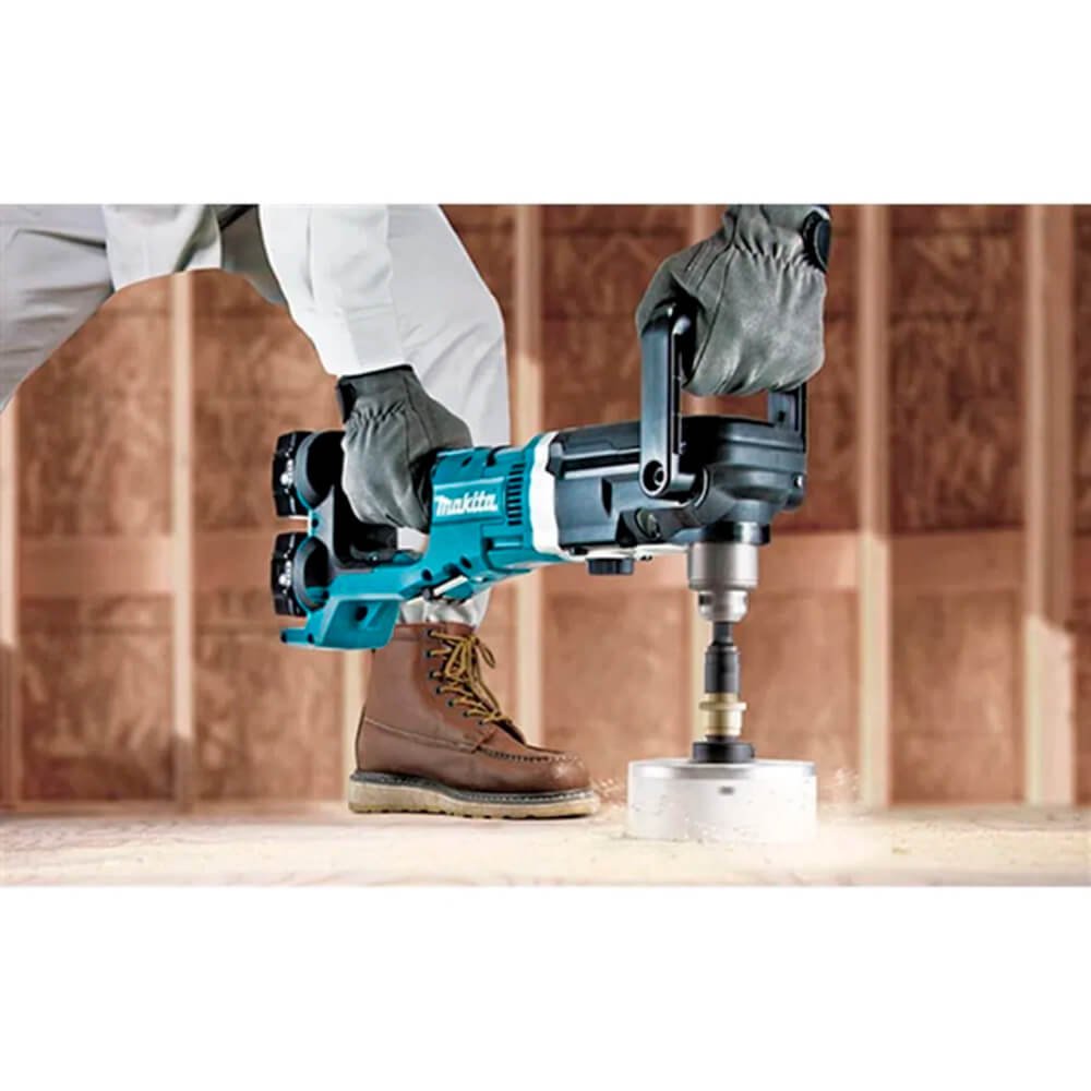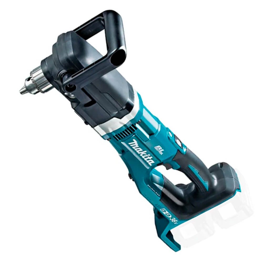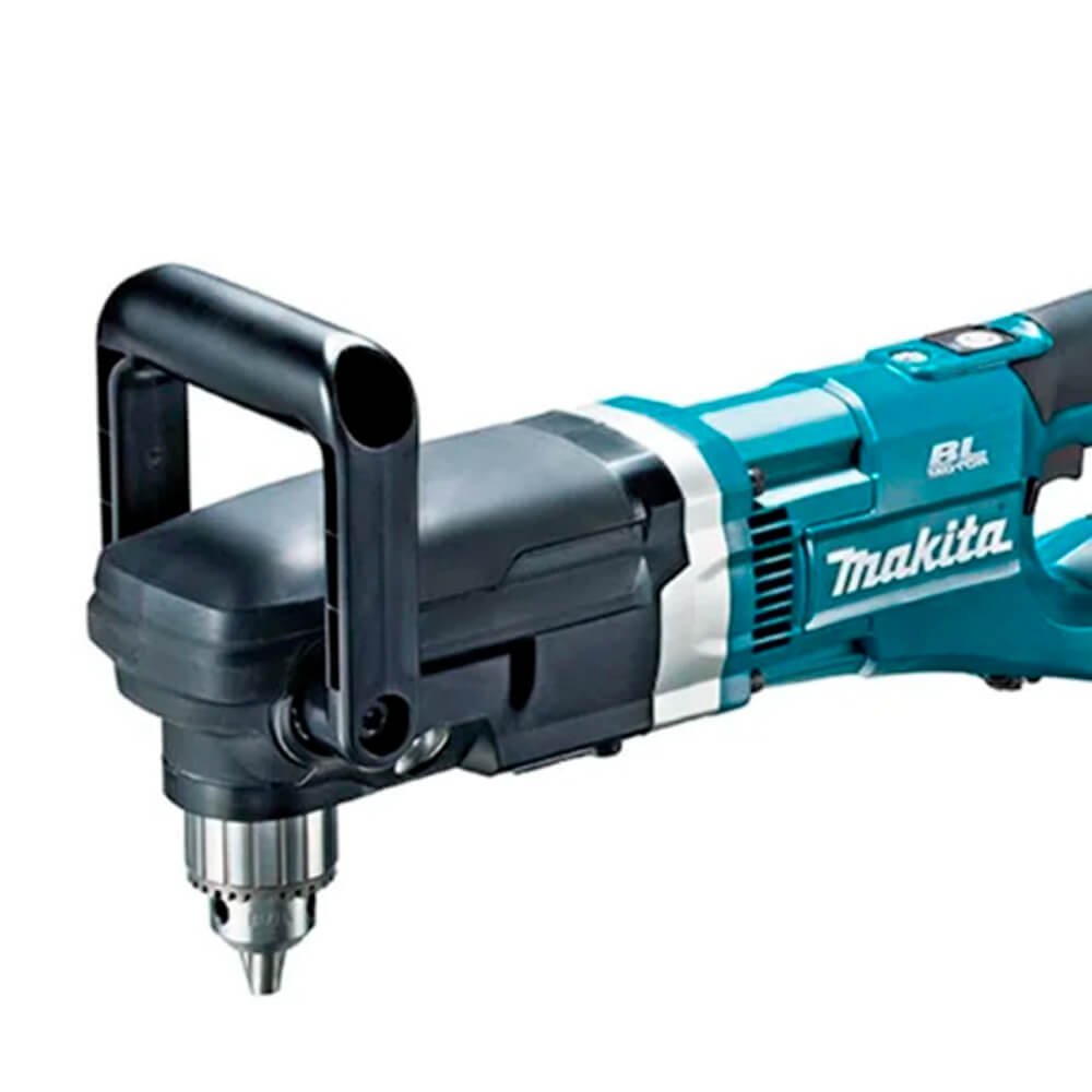 Furadeira angular é indicada para perfurações em madeira, metais e plásticos. Possui mandril transversal ao corpo da máquina, permitindo atividades em áreas de difícil acesso. Alta capacidade de perduração em madeira. Oferece o dobro de desempenho operacional com a tecnologia 18V + 18V, onde é possível o uso de 2 baterias simultaneamente sem comprometer a amperagem das baterias. Além de maior autonomia e desempenho devido ao motor BL sem escovas de carvão, gerando menos calor e aumentando o volume de trabalho em uma carga total de bateria. É resistente à água e poeira com a tecnologia XPT, vedando internamente o motor e as partes elétricas. Possui controle automático de torque com tecnologia ADT.