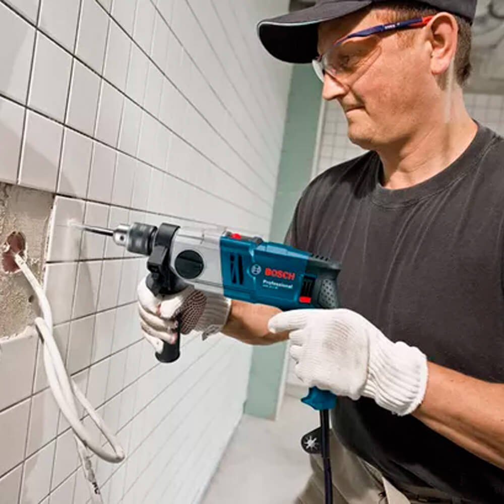 Furadeira de Impacto 1/2 Pol. 800W 220V Bosch-GSB-202RE ferramenta elétrica que combina uma broca rotativa com um mecanismo de impacto para perfurar materiais mais duros. Capaz de gerar uma força de impacto que ajuda a romper o material enquanto a broca gira, facilitando a perfuração.