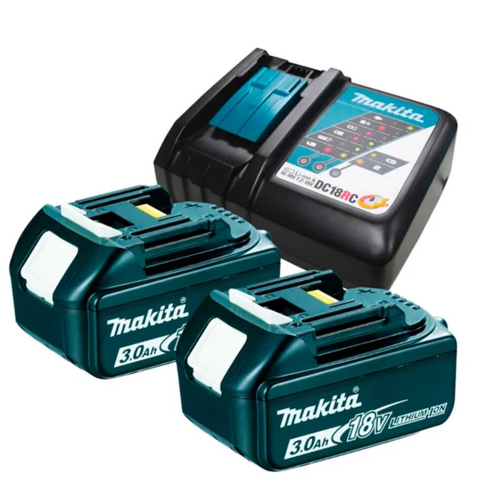 2 baterias 18V 3,0 Ah, carregador rápido e maleta Mak-pac N°2.