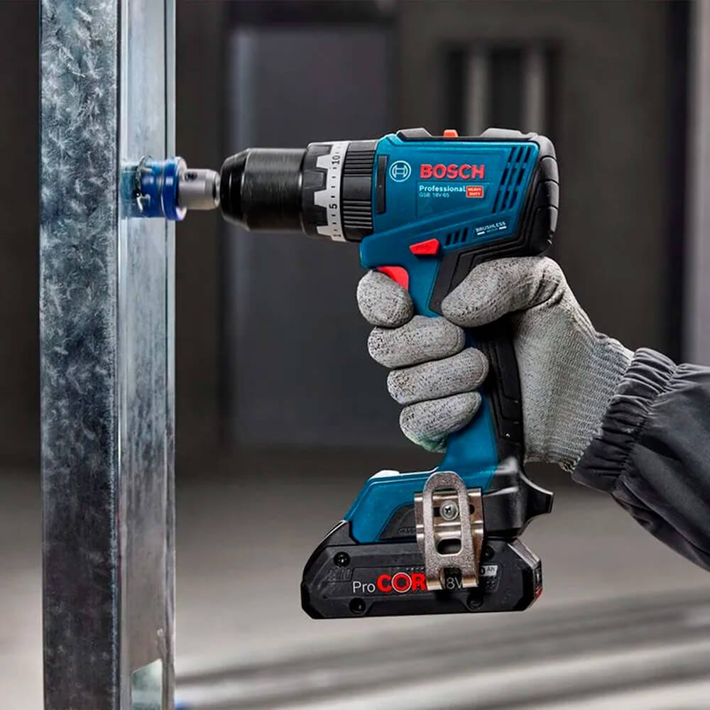Se estiver procurando uma parafusadeira e furadeira a bateria versátil que ofereça a potência necessária até mesmo para aplicações de parafusamento difíceis, não procure mais, pois a Bosch GSB 18V-65 Professional é a melhor opção. Ela perfura metal, madeira ou plástico com facilidade graças ao torque aprimorado de 31/65 Nm e à velocidade de 0-550/0-2100 rpm, além de ter uma função de impacto adicional para perfuração em alvenaria.