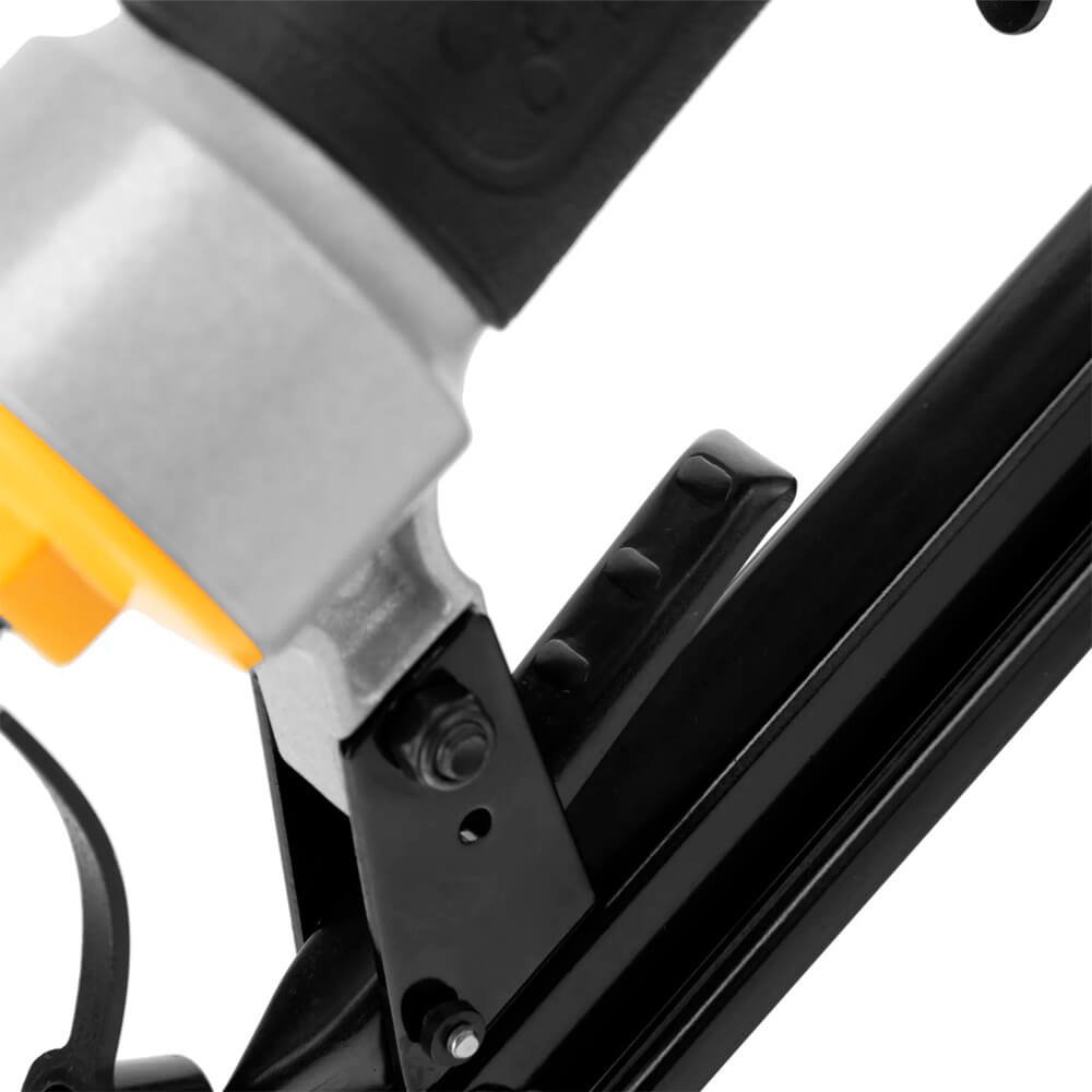 É a escolha ideal para quem busca eficiência na fixação de materiais planos, como compensado, aglomerado, MDF e tecidos de revestimento. Carregada com grampos retangulares de 21GA de 6 a 16 mm, esta ferramenta é indispensável na produção de móveis e acabamentos. Combina precisão, durabilidade e conforto, tornando-se a ferramenta perfeita para profissionais e entusiastas do faça-você-mesmo.