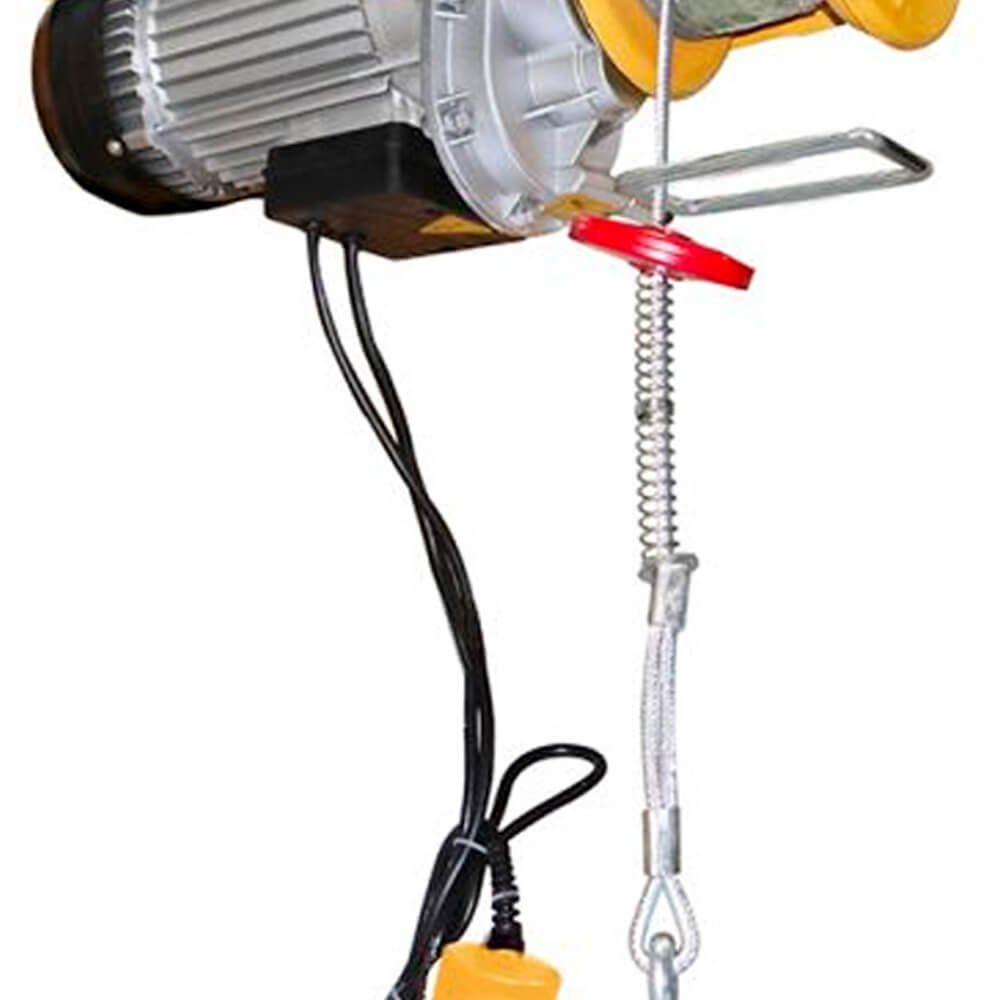Guincho de coluna com cabo de aço galvanizado e não rotativo de qualidade (19×7 AF), desenvolvido para trabalhos de elevação de cargas, capaz de reduzir esforço físico, aumentar a produtividade e eficiência do operador. Possui redutor com carcaça de alumínio, proteção (estrutura) em chapa de aço reforçado, botoeira pendente com chave de emergência e fim de curso para desligamento automático. O freio é acionado por mola de compressão e desativado por força centrífuga, recomendado para cargas e descargas de produtos em pequenas edificações, oficinas, depósitos, armazéns e poços.