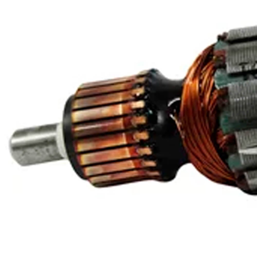 Induzido também conhecido como rotor, usado em conjunto com o estator ou bobina de campo e escovas de carvão.