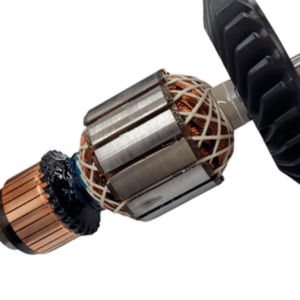 Induzido também conhecido como rotor, usado em conjunto com o estator ou bobina de campo e escovas de carvão.