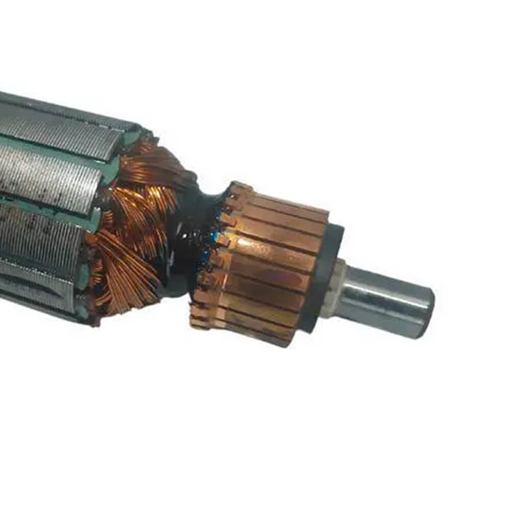 Induzido também conhecido como rotor, usado em conjunto com o estator ou bobina de campo e escovas de carvão.