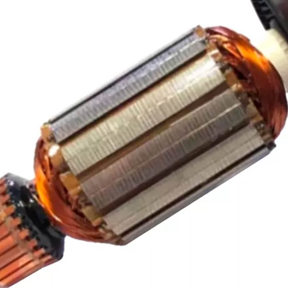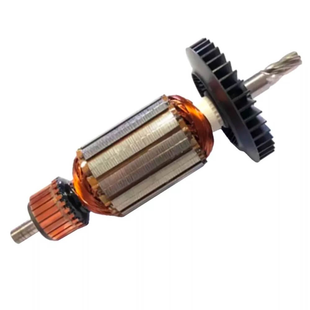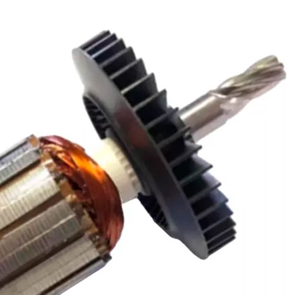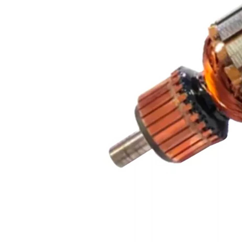 Induzido também conhecido como rotor, usado em conjunto com o estator ou bobina de campo e escovas de carvão.