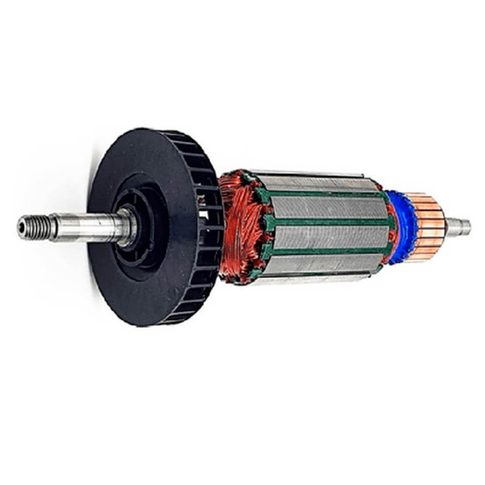 Induzido também conhecido como rotor, usado em conjunto com o estator ou bobina de campo e escovas de carvão.