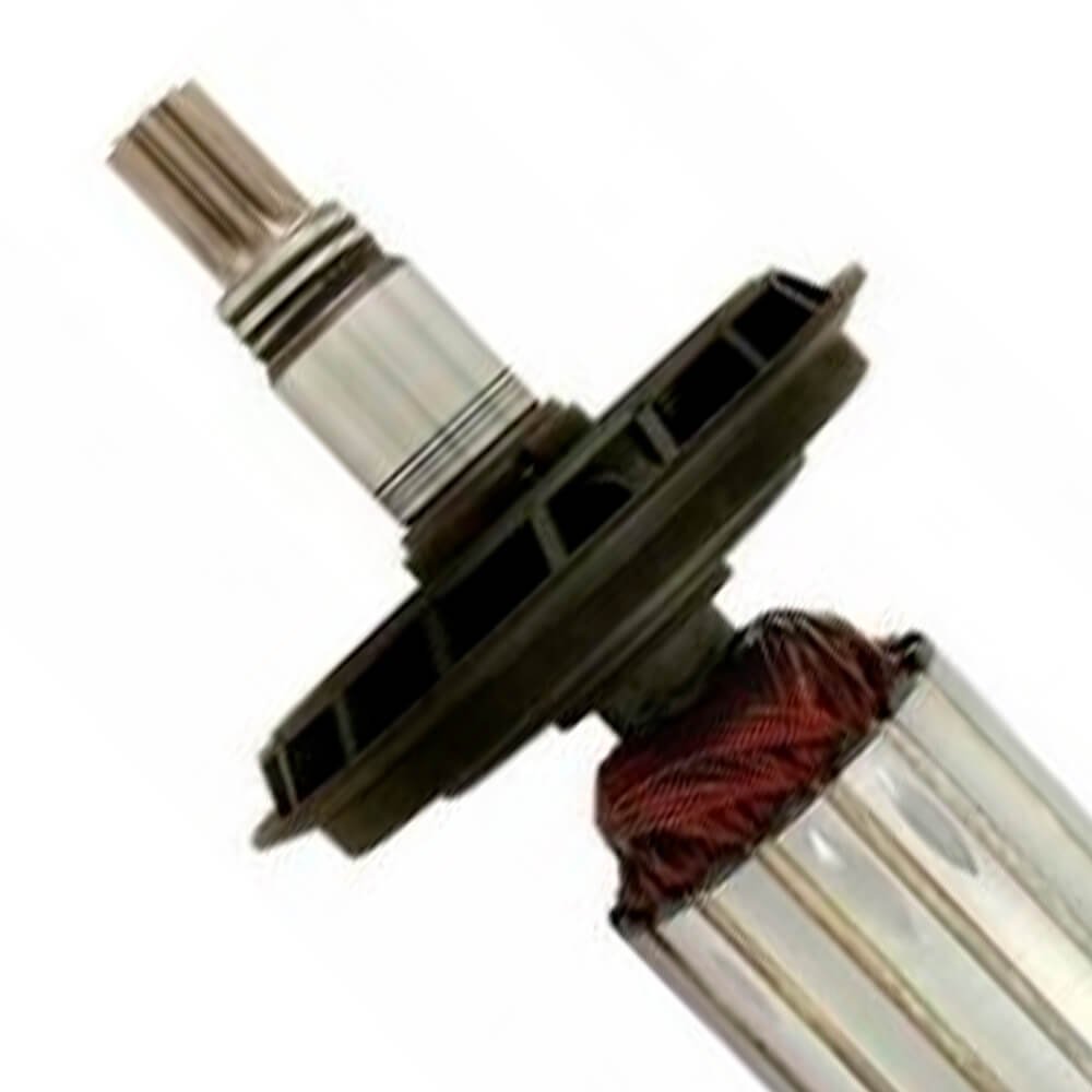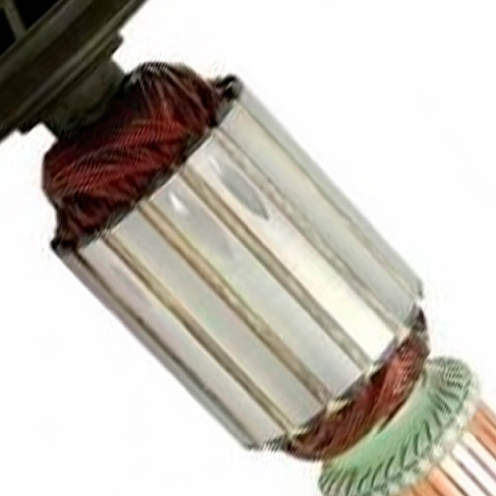 Induzido também conhecido como rotor, usado em conjunto com o estator ou bobina de campo e escovas de carvão.