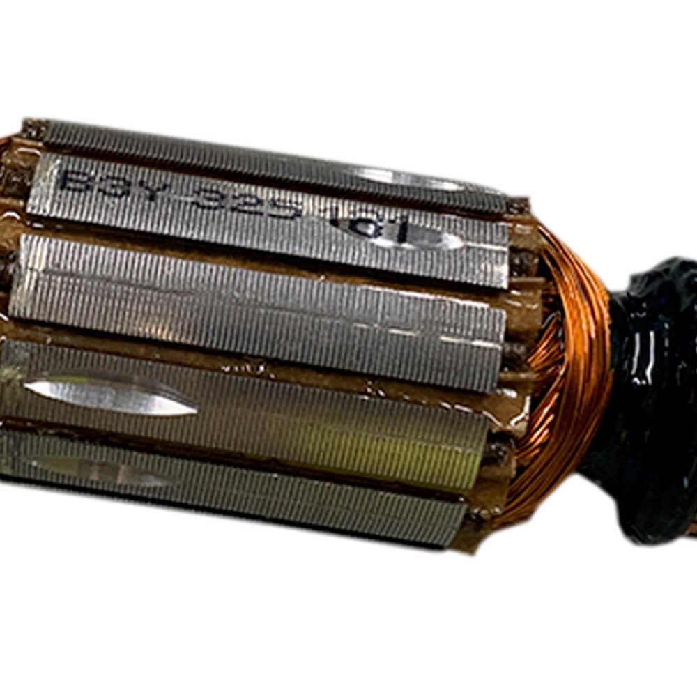 Induzido também conhecido como rotor, usado em conjunto com o estator ou bobina de campo e escovas de carvão.