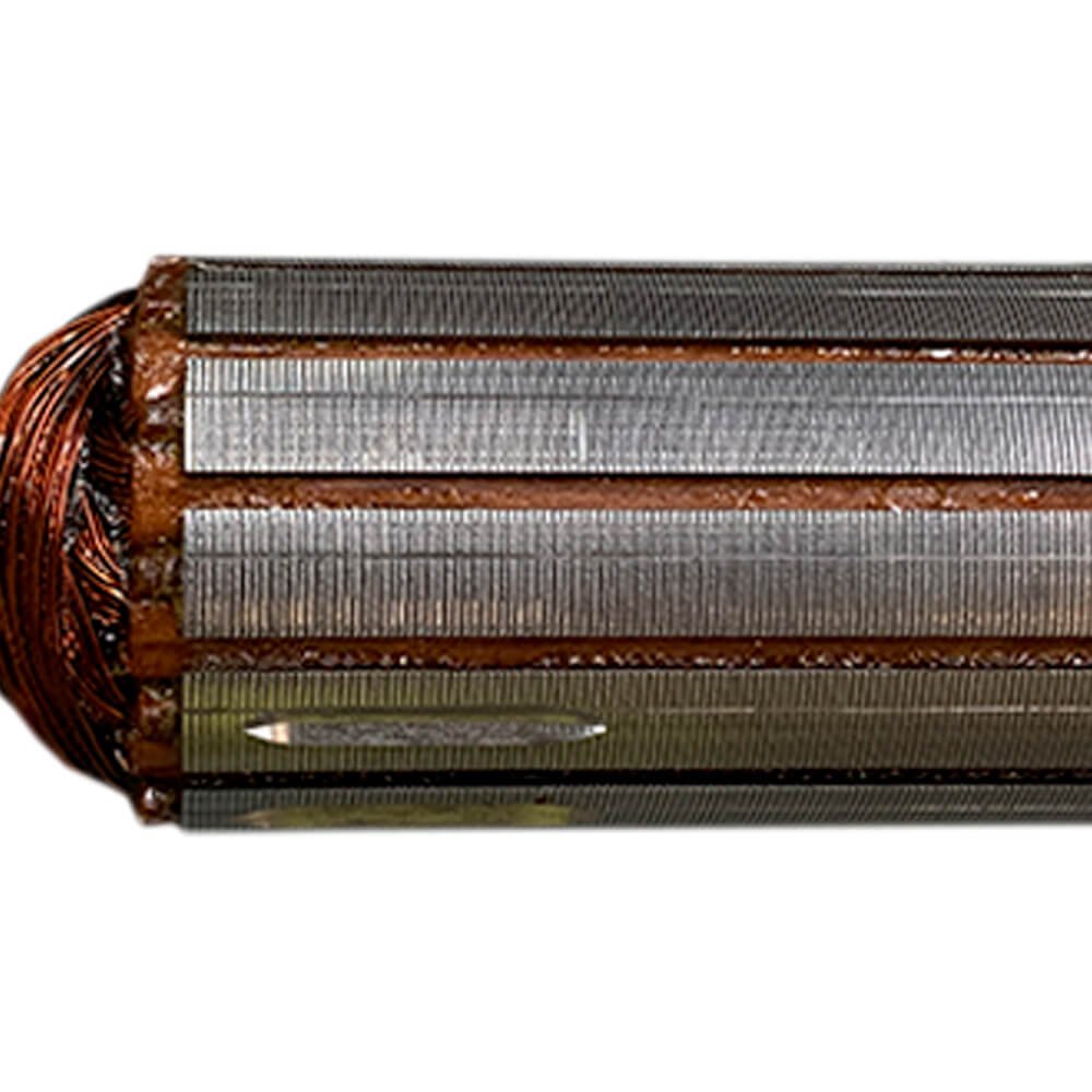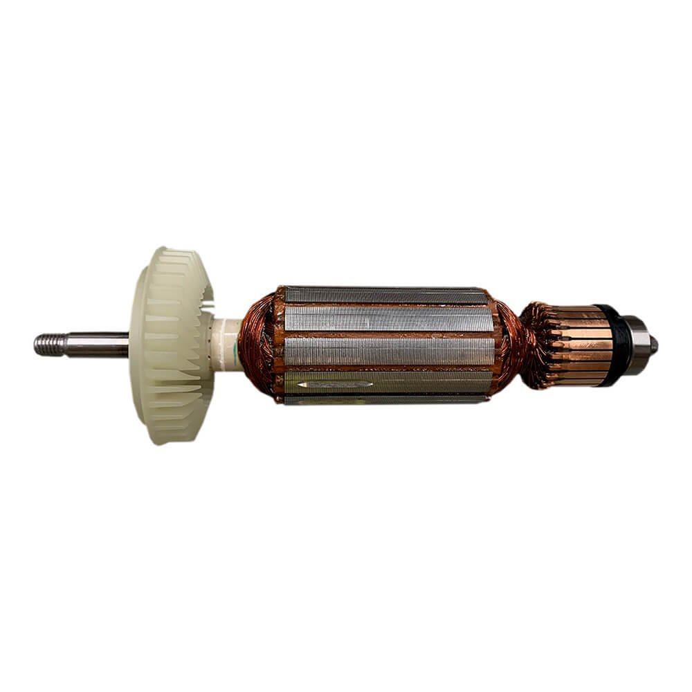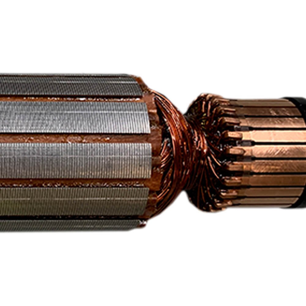 Induzido também conhecido como rotor, usado em conjunto com o estator ou bobina de campo e escovas de carvão.