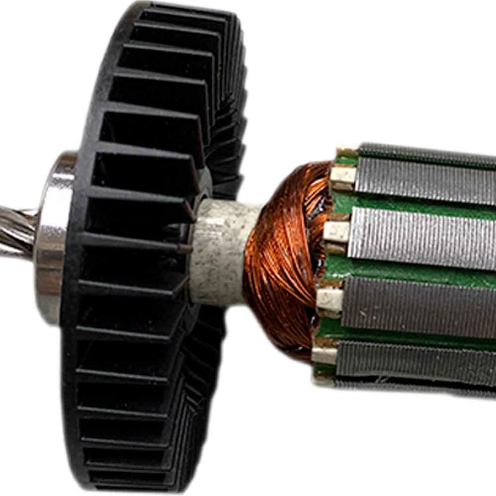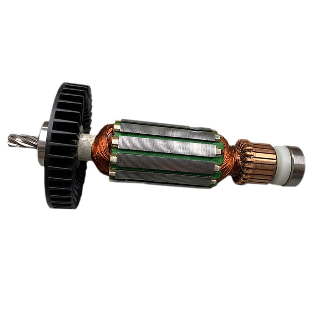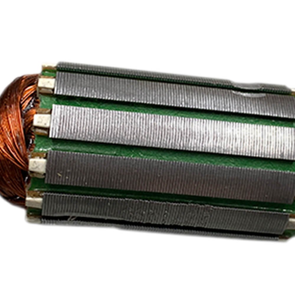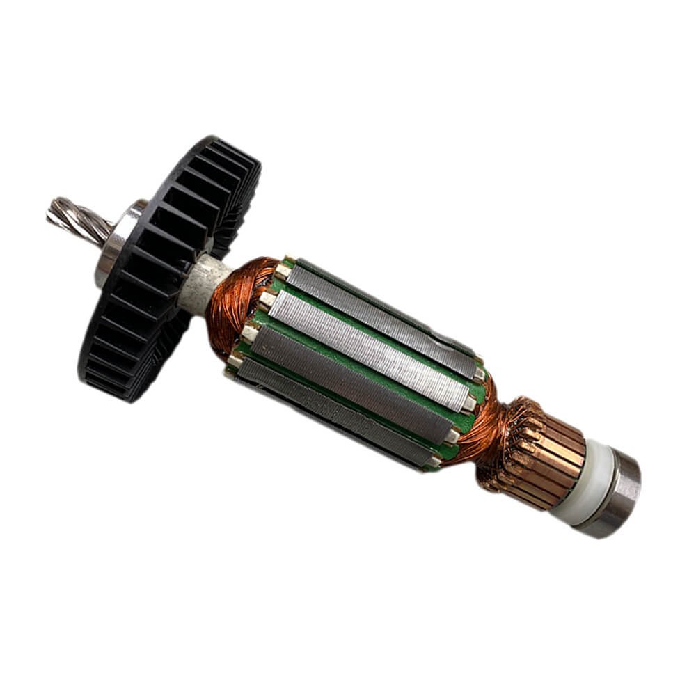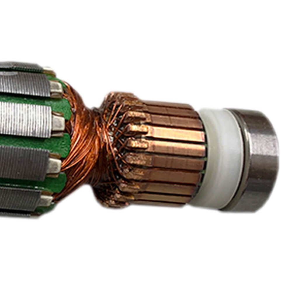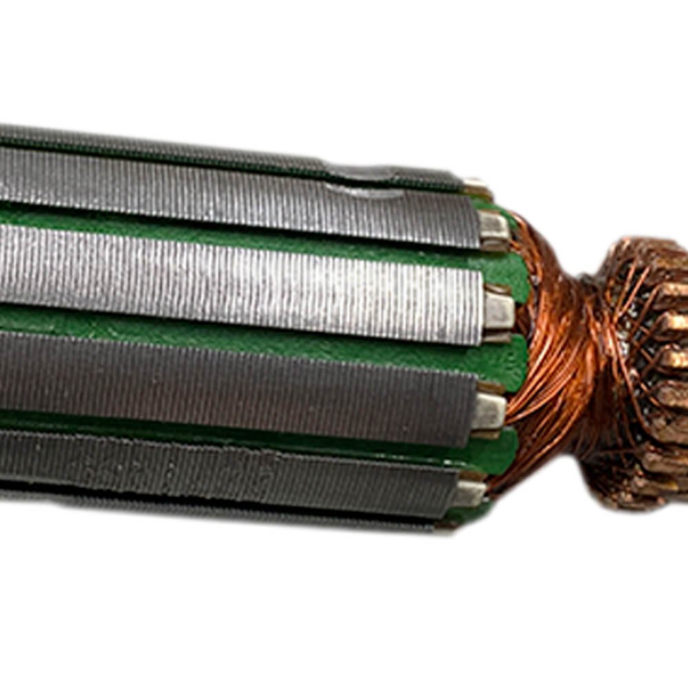 Induzido também conhecido como rotor, usado em conjunto com o estator ou bobina de campo e escovas de carvão.