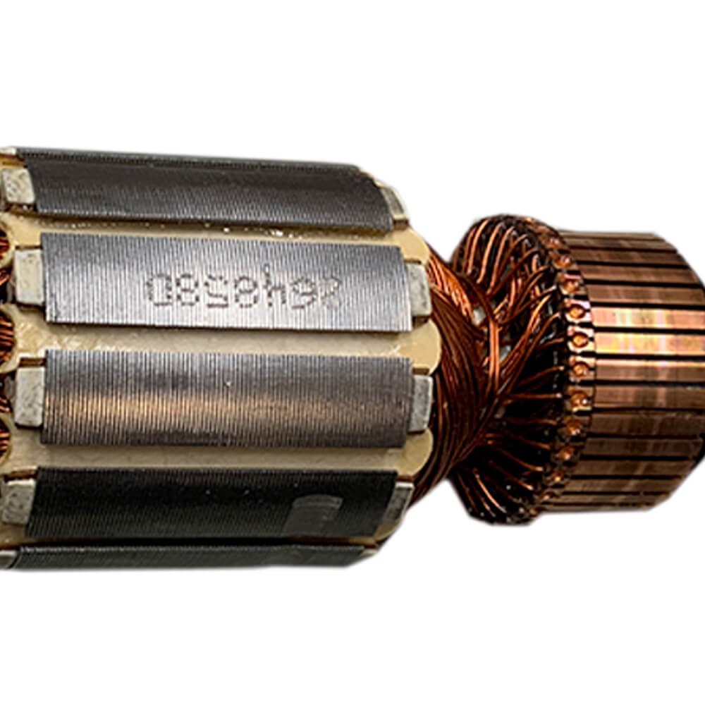 Induzido também conhecido como rotor, usado em conjunto com o estator ou bobina de campo e escovas de carvão.