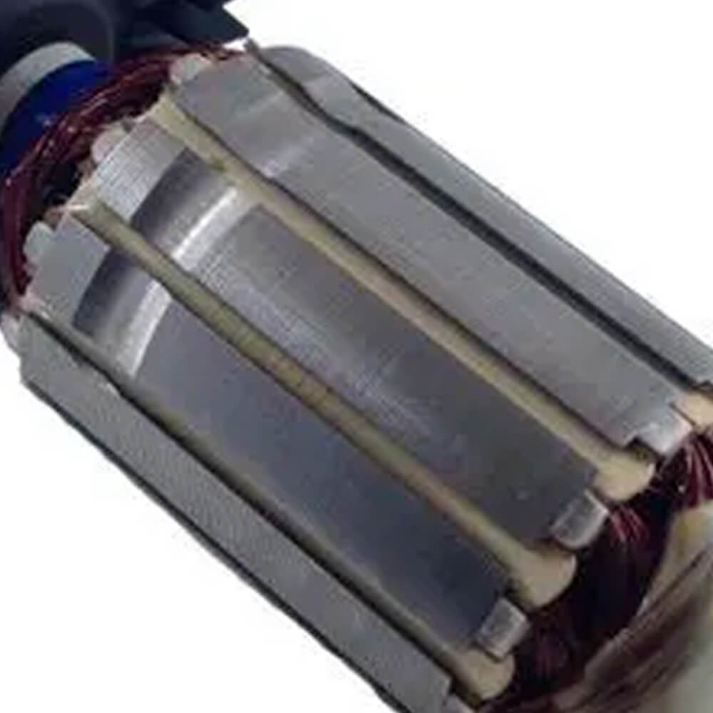 Induzido também conhecido como rotor, usado em conjunto com o estator ou bobina de campo e escovas de carvão.