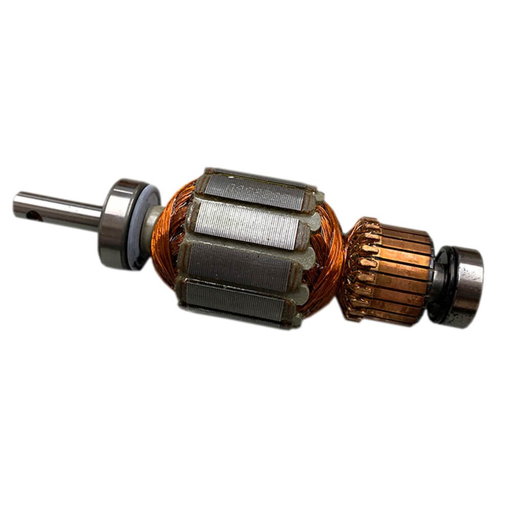 Induzido também conhecido como rotor, usado em conjunto com o estator ou bobina de campo e escovas de carvão.
