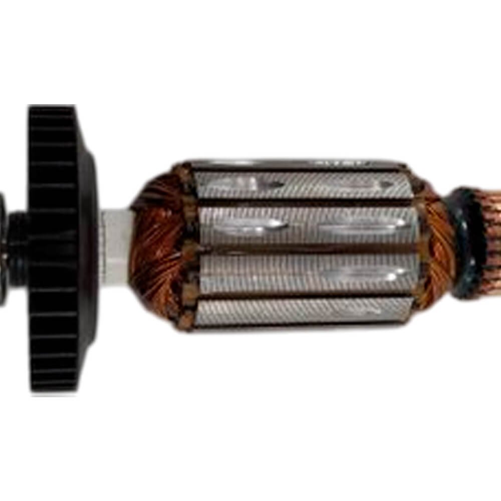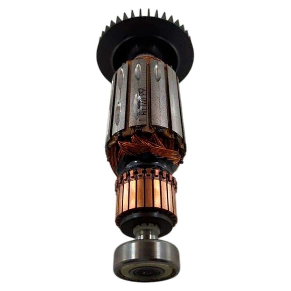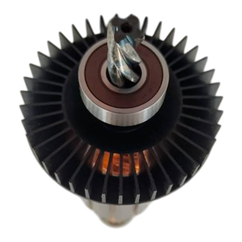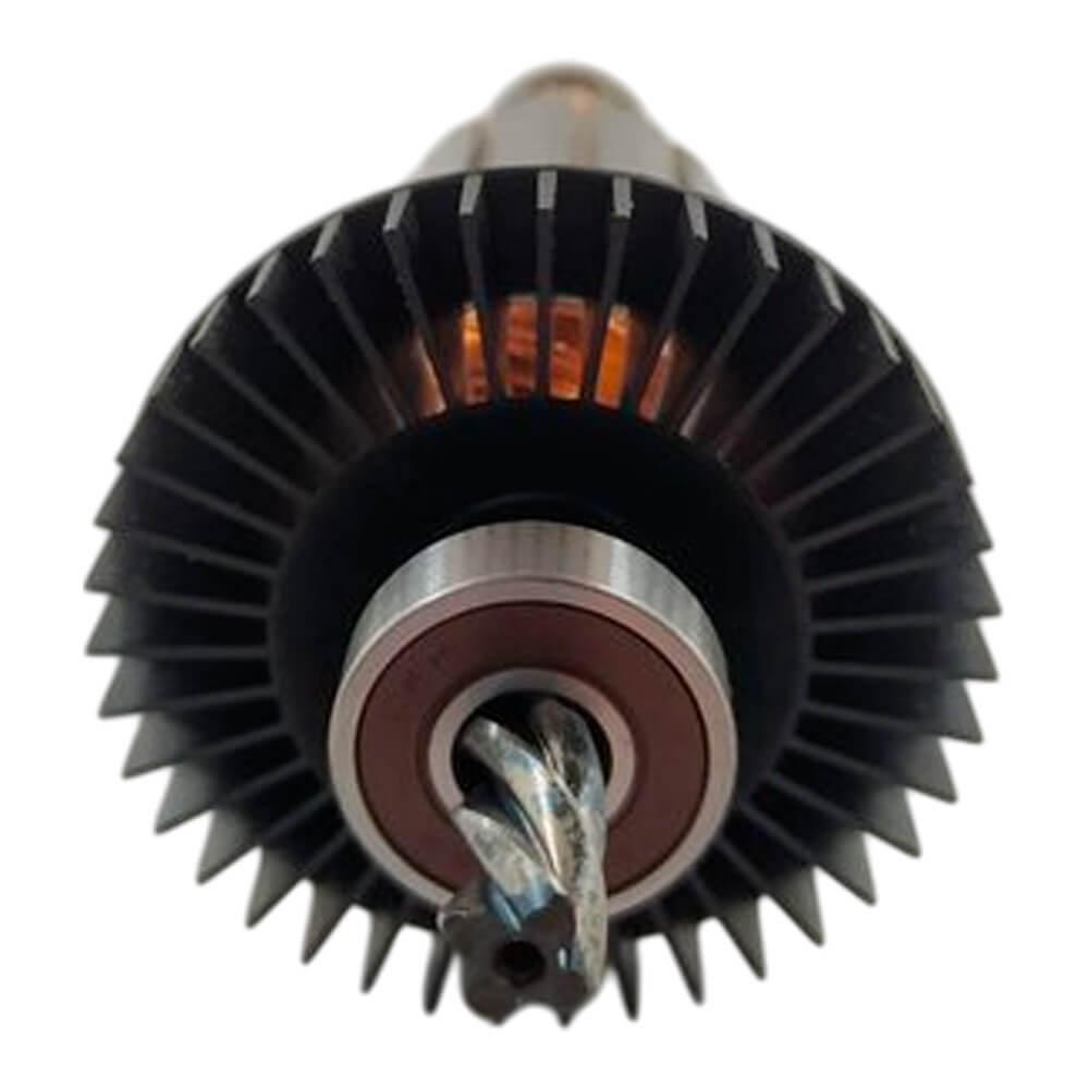 Induzido também conhecido como rotor, usado em conjunto com o estator ou bobina de campo, rolamentos e escovas de carvão