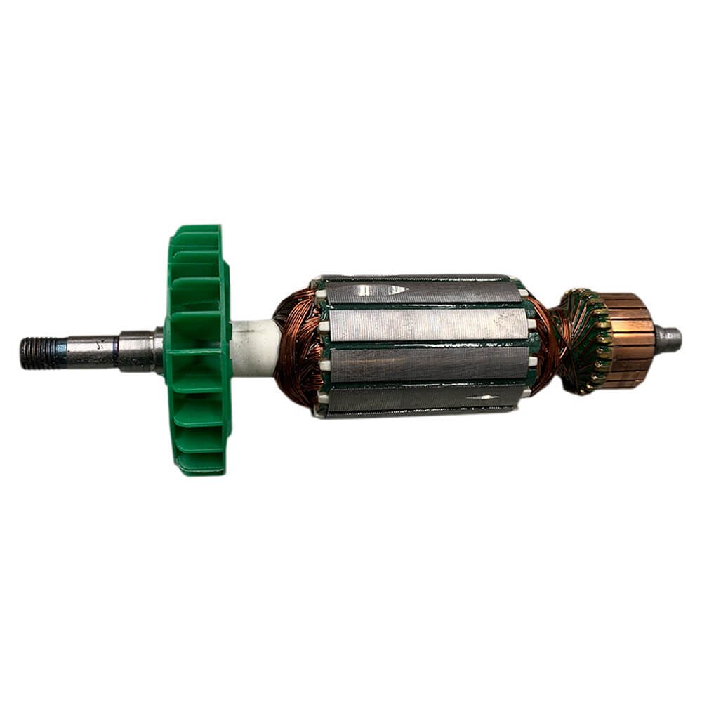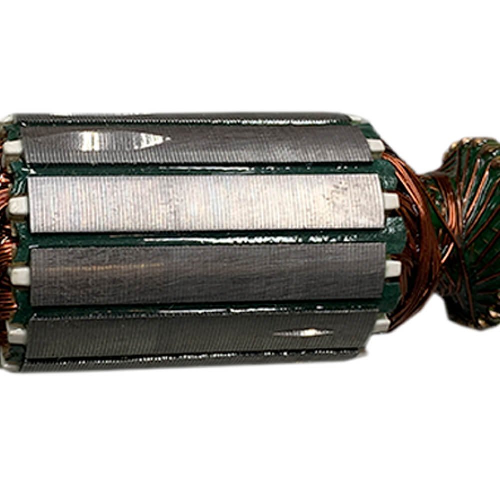 Induzido também conhecido como rotor, usado em conjunto com o estator ou bobina de campo e escovas de carvão.