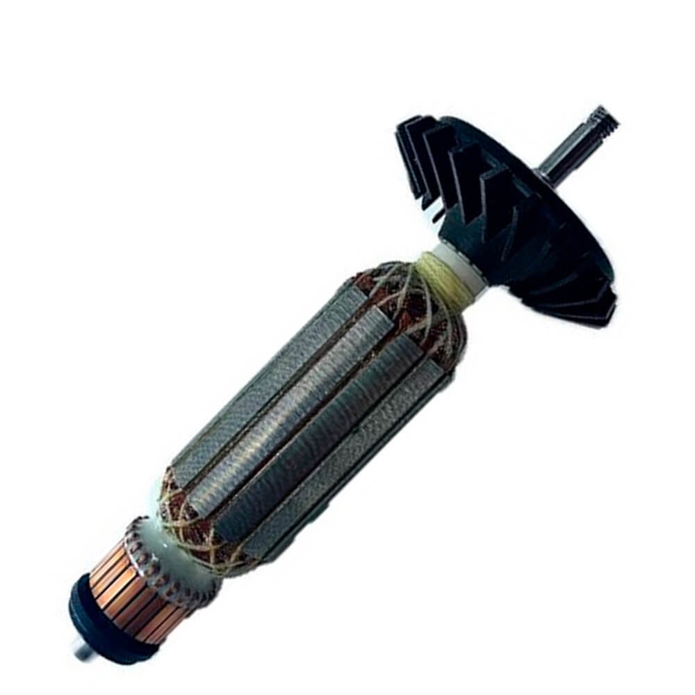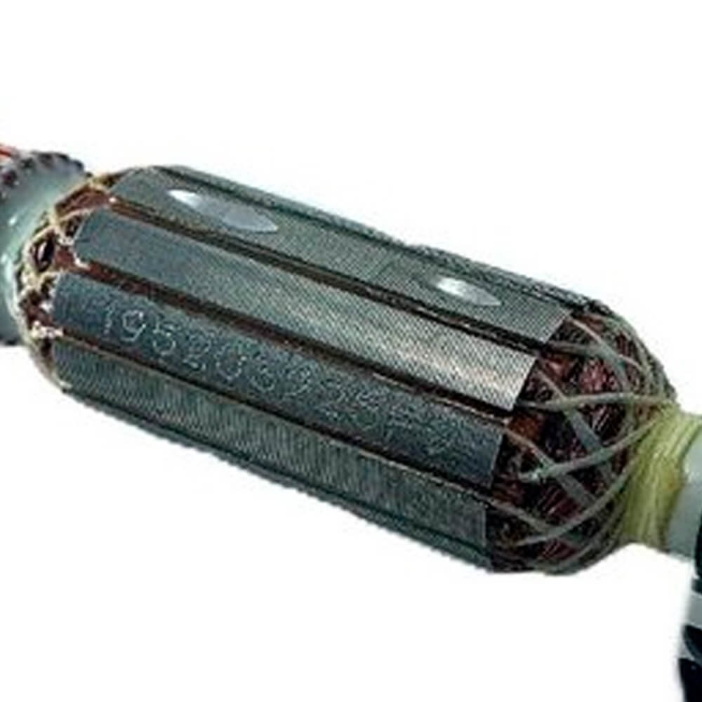 Induzido também conhecido como rotor, usado em conjunto com o estator ou bobina de campo e escovas de carvão.