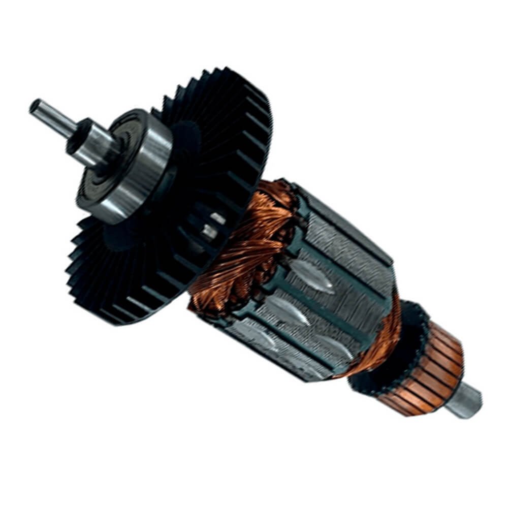 Induzido também conhecido como rotor, usado em conjunto com o estator ou bobina de campo e escovas de carvão.