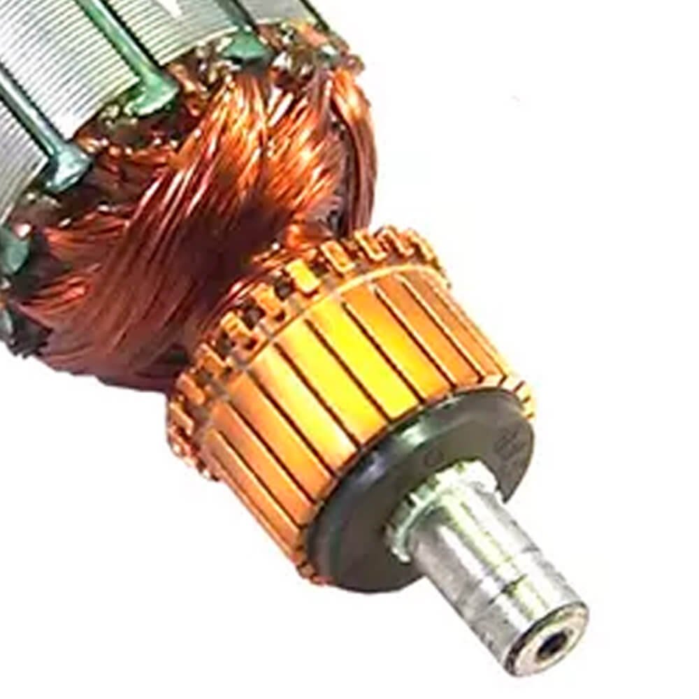 Induzido também conhecido como rotor, usado em conjunto com o estator ou bobina de campo e escovas de carvão.