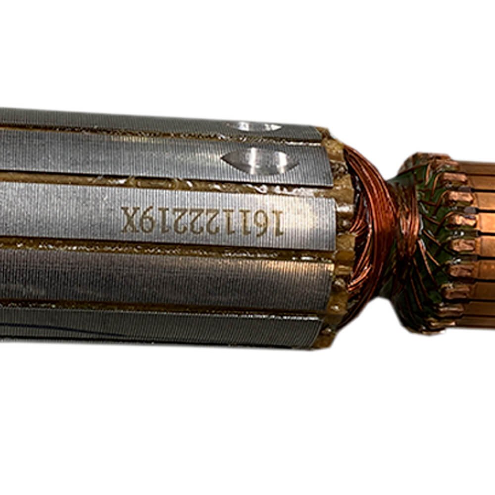 Induzido também conhecido como rotor, usado em conjunto com o estator ou bobina de campo e escovas de carvão.