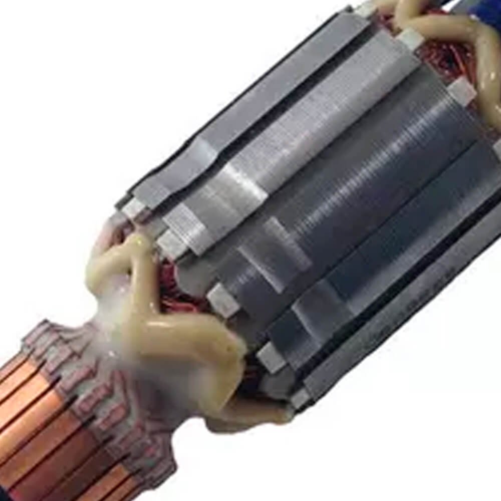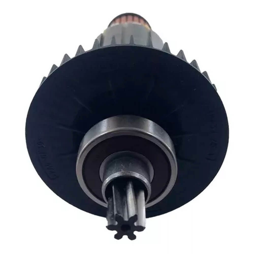 Induzido também conhecido como rotor, usado em conjunto com o estator ou bobina de campo e escovas de carvão.