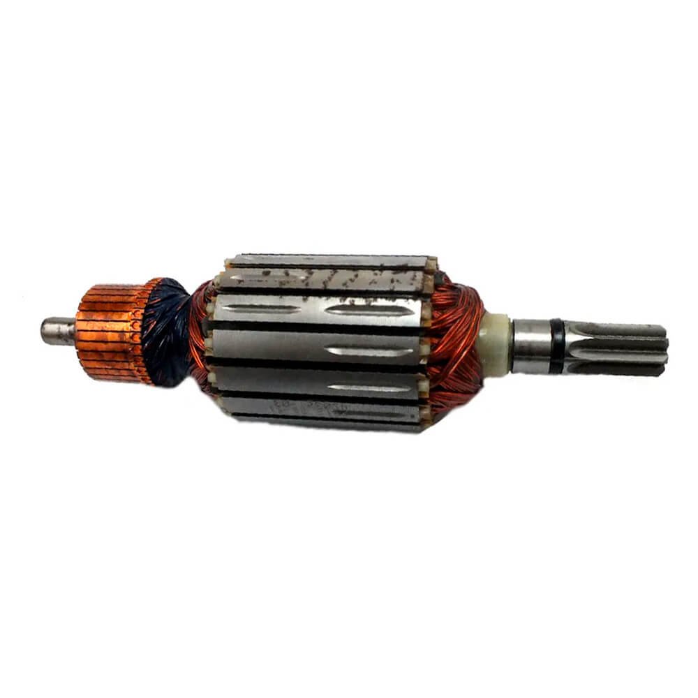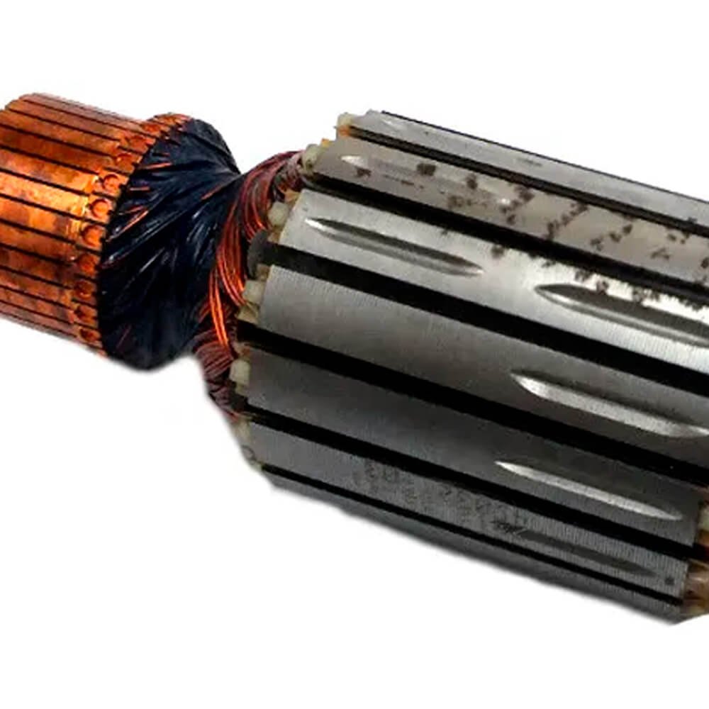 Induzido também conhecido como rotor, usado em conjunto com o estator ou bobina de campo, rolamentos e escovas de carvão.