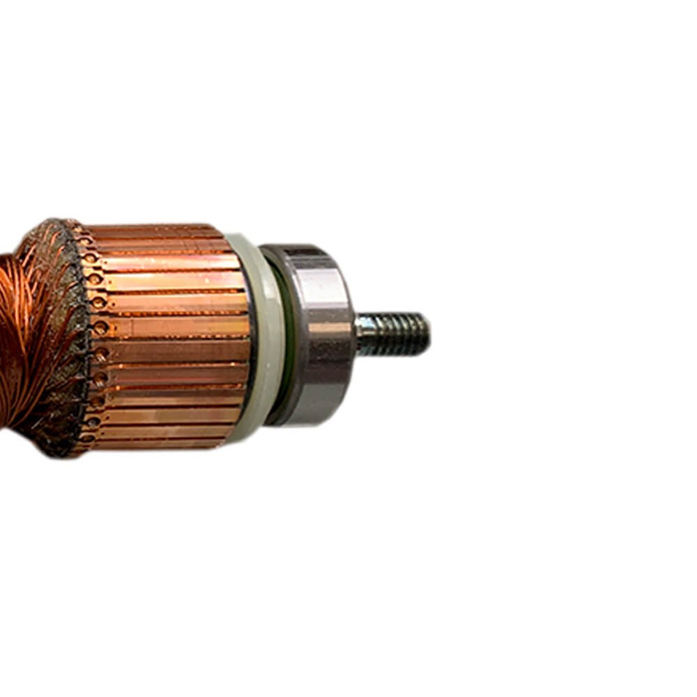 Induzido também conhecido como rotor, usado em conjunto com o estator ou bobina de campo e escovas de carvão.