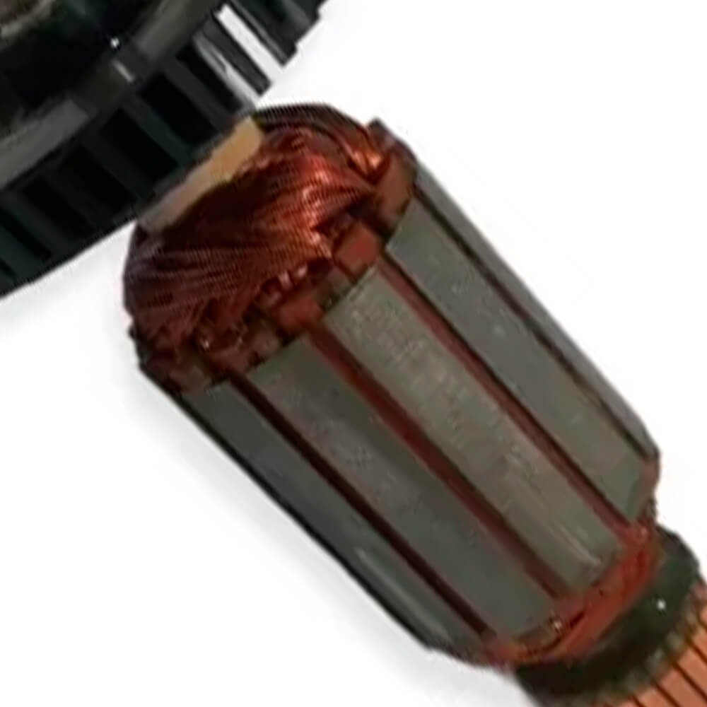 Induzido também conhecido como rotor, usado em conjunto com o estator ou bobina de campo e escovas de carvão.