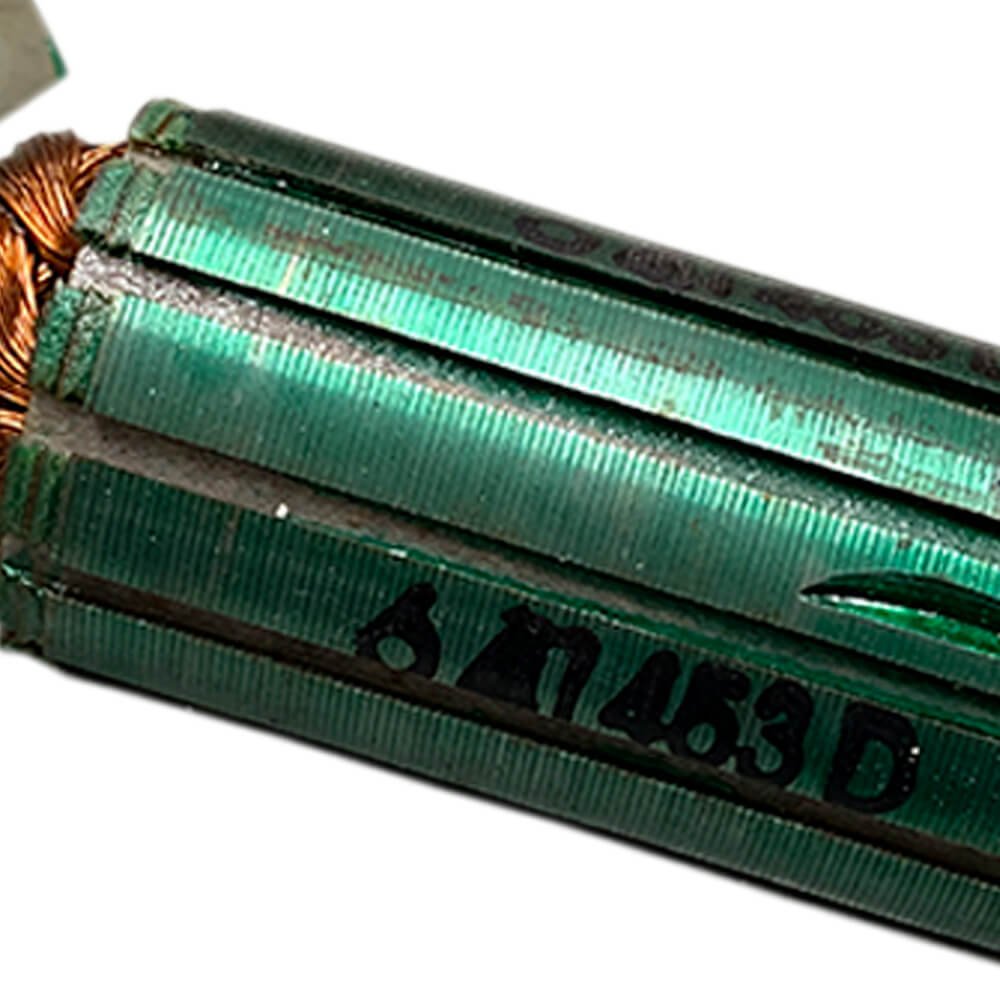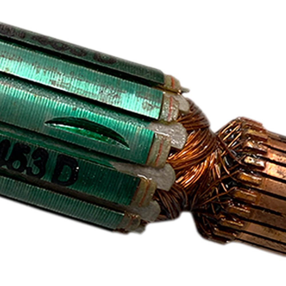 Induzido também conhecido como rotor, usado em conjunto com o estator ou bobina de campo e escovas de carvão.