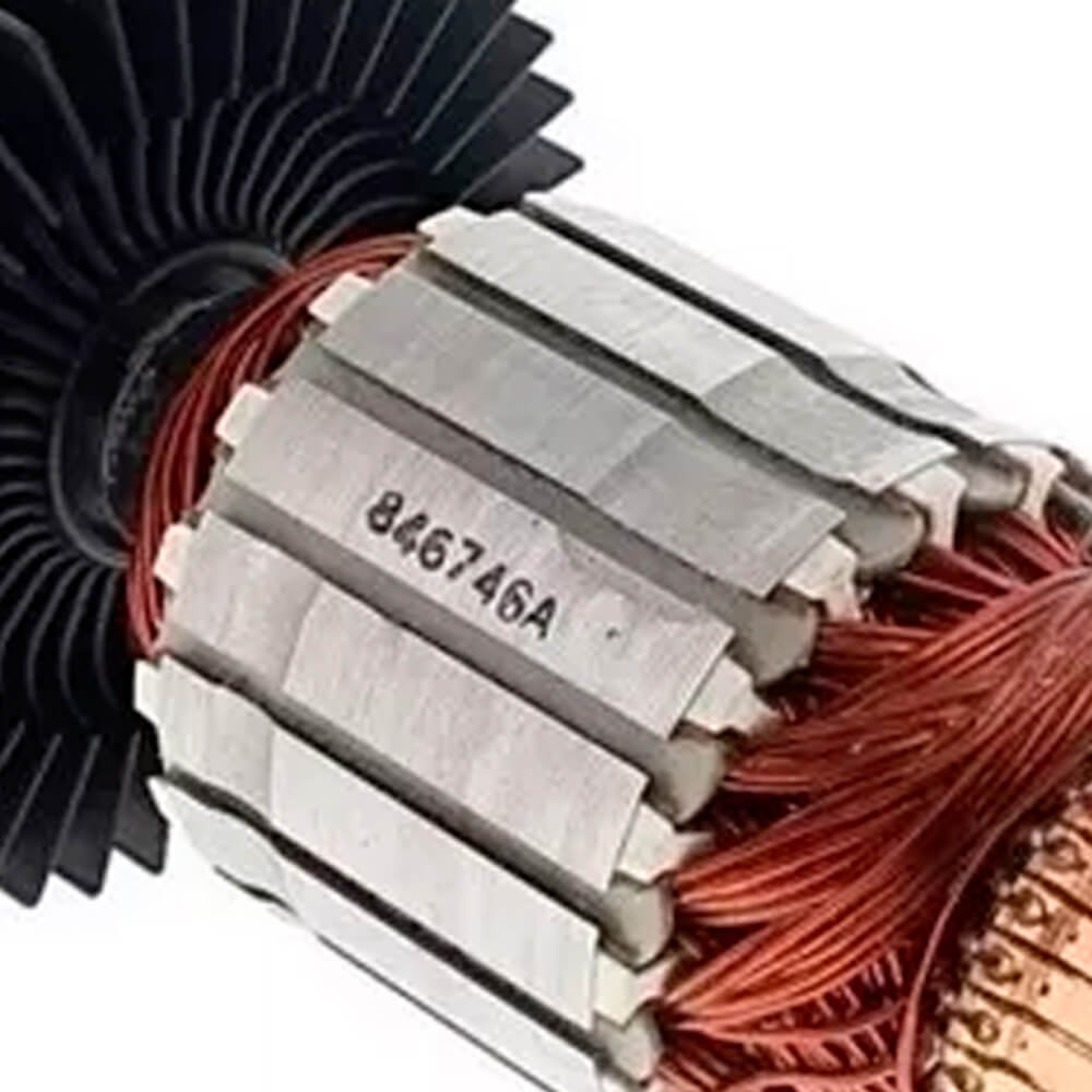 Induzido também conhecido como rotor, usado em conjunto com o estator ou bobina de campo e escovas de carvão.