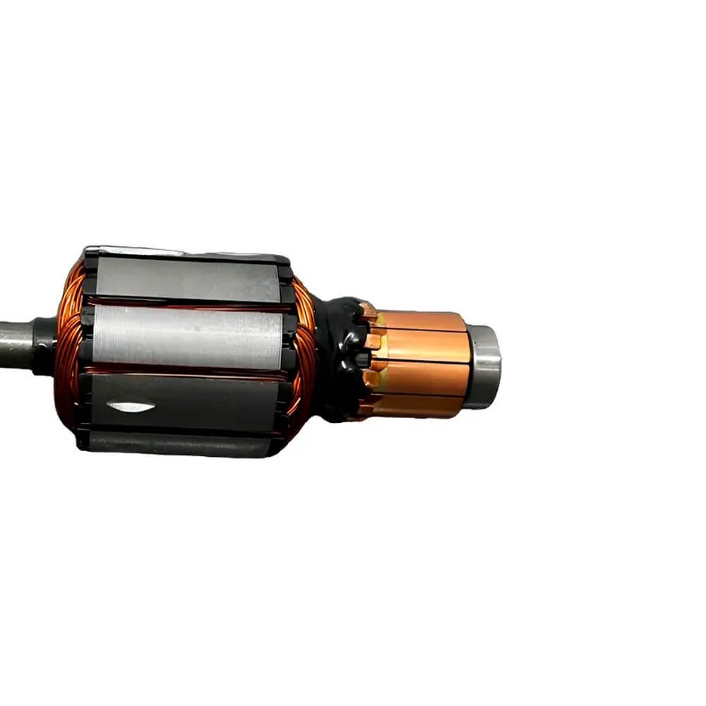 Induzido também conhecido como rotor, usado em conjunto com o estator ou bobina de campo e escovas de carvão.